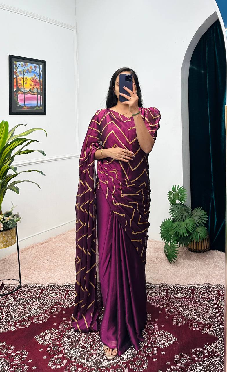 Rangoli Pleated Gown with Foil Printed Dupatta & Attached Pallu (Purple)