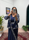 Chinon Silk Saree with Heavy Embroidery & Fully Stitched Koti (Blue)