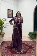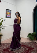 Chinon Silk Saree with Heavy Embroidery & Fully Stitched Koti (Purple)
