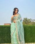 Designer Butterfly Net Saree with Embroidery & Pearl Work Border