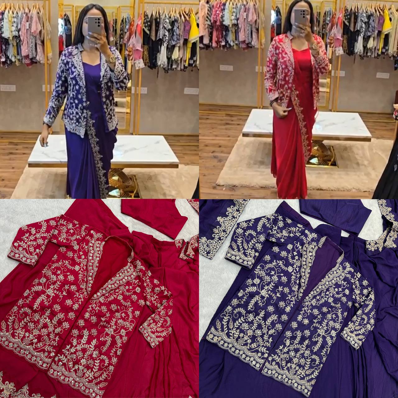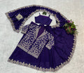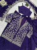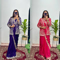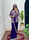 Designer Chinon Saree Set with Heavy Embroidery & Stitched Koti (Blue)