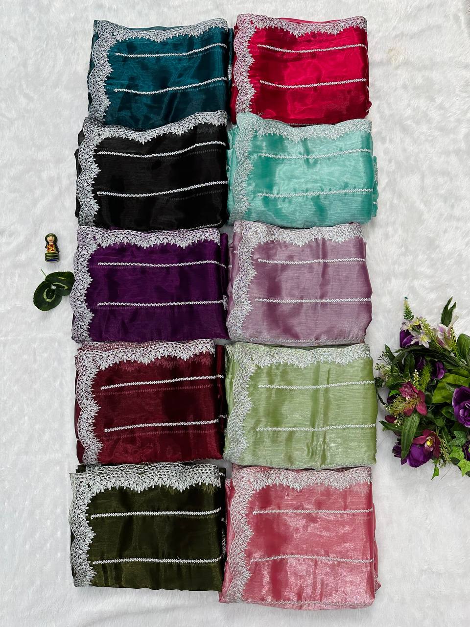Work:- FULL HEAVY EMBROIDERY ZARI WORK PATTA WITH CUT WORK BORDER / 5.5 mtr