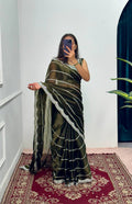 Designer Embroidered Burberry Saree (Green)
