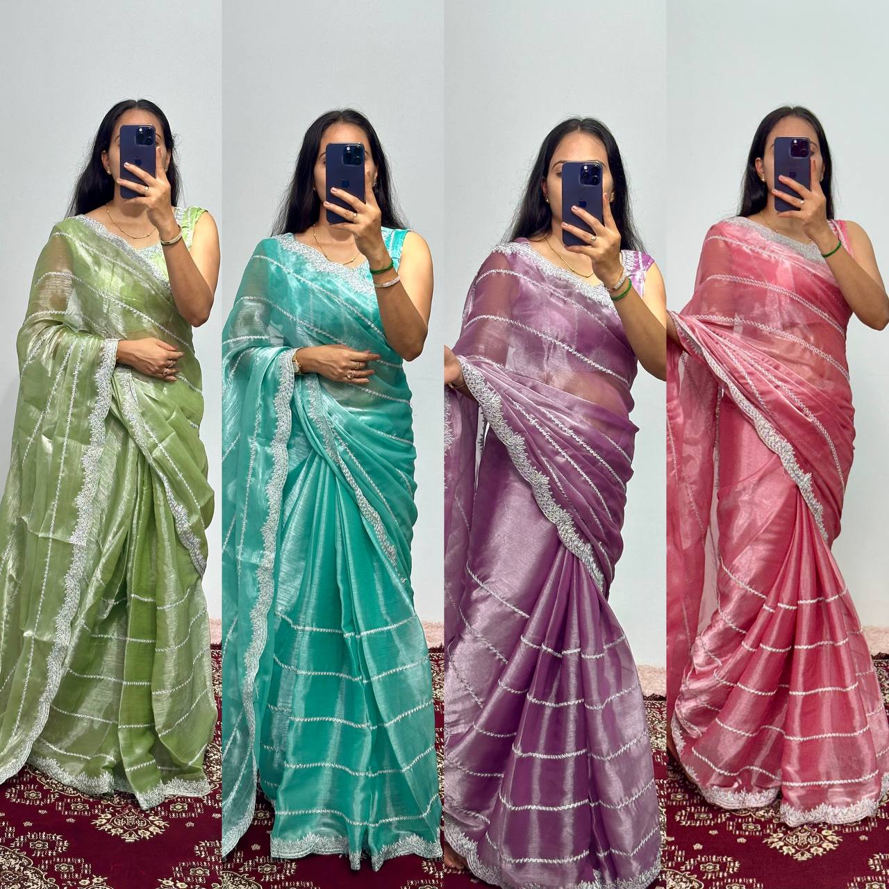 Work:- FULL HEAVY EMBROIDERY ZARI WORK PATTA WITH CUT WORK BORDER / 5.5 mtr