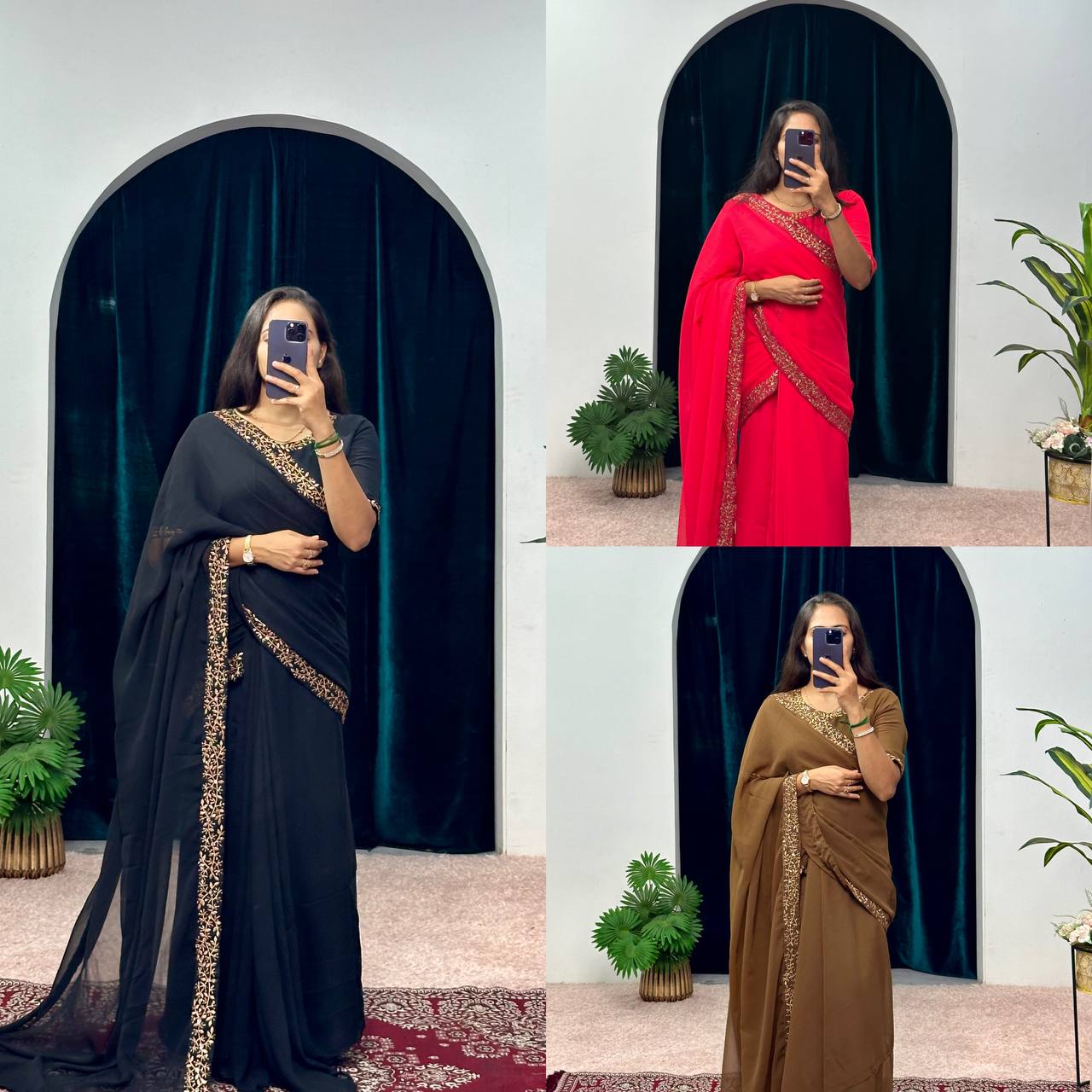 HEAVY GEORGETTE WITH FANCY LACE WORK / 2.3 mtr