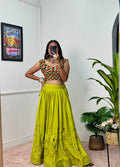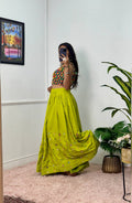 Designer Rayon Lehenga with 4 Meter Flair & Banglory Embroidered Blouse (Green)