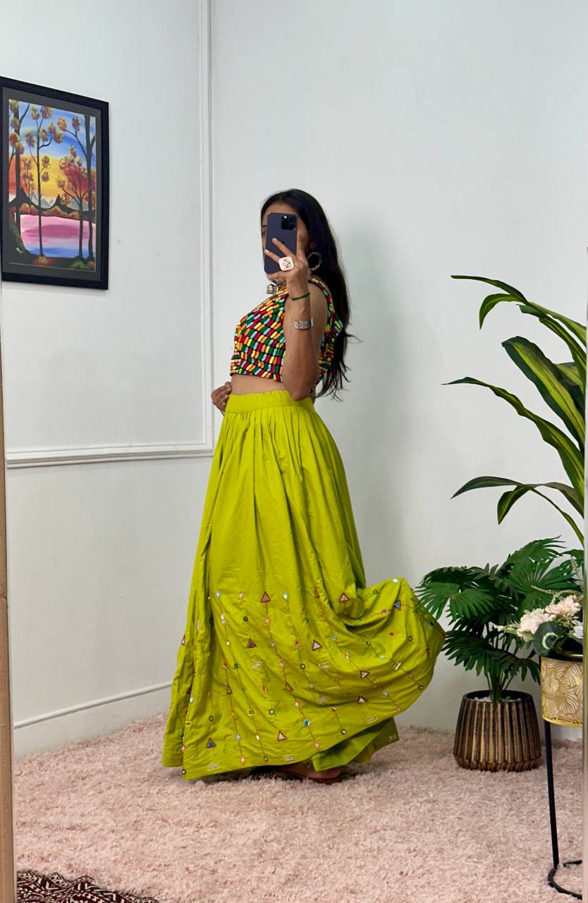 Flair:- 4 METER WITH HEAVY EMBROIDERY WORK WITH REAL MIRROR & CANVAS PATTA