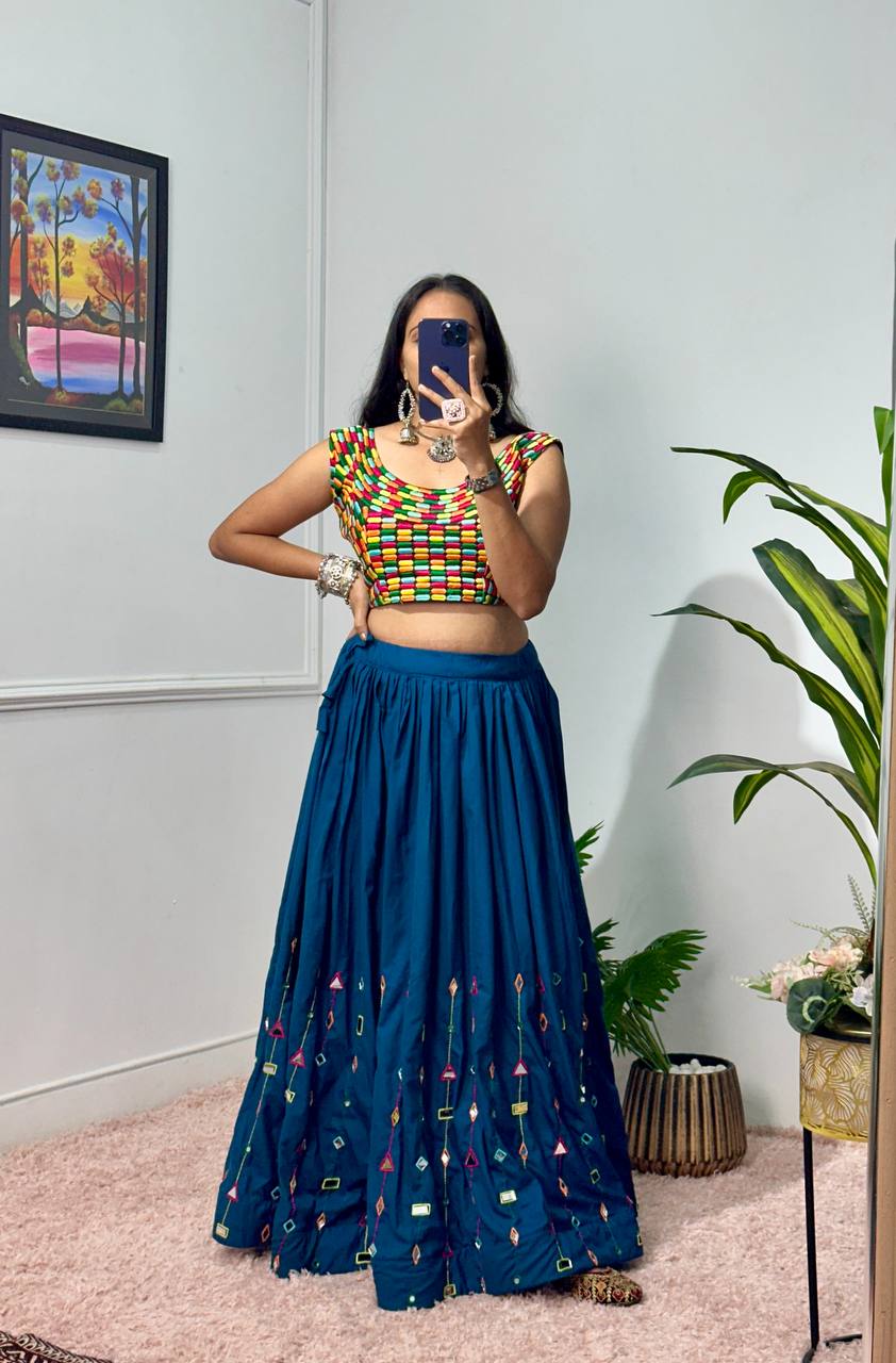 Flair:- 4 METER WITH HEAVY EMBROIDERY WORK WITH REAL MIRROR & CANVAS PATTA