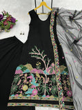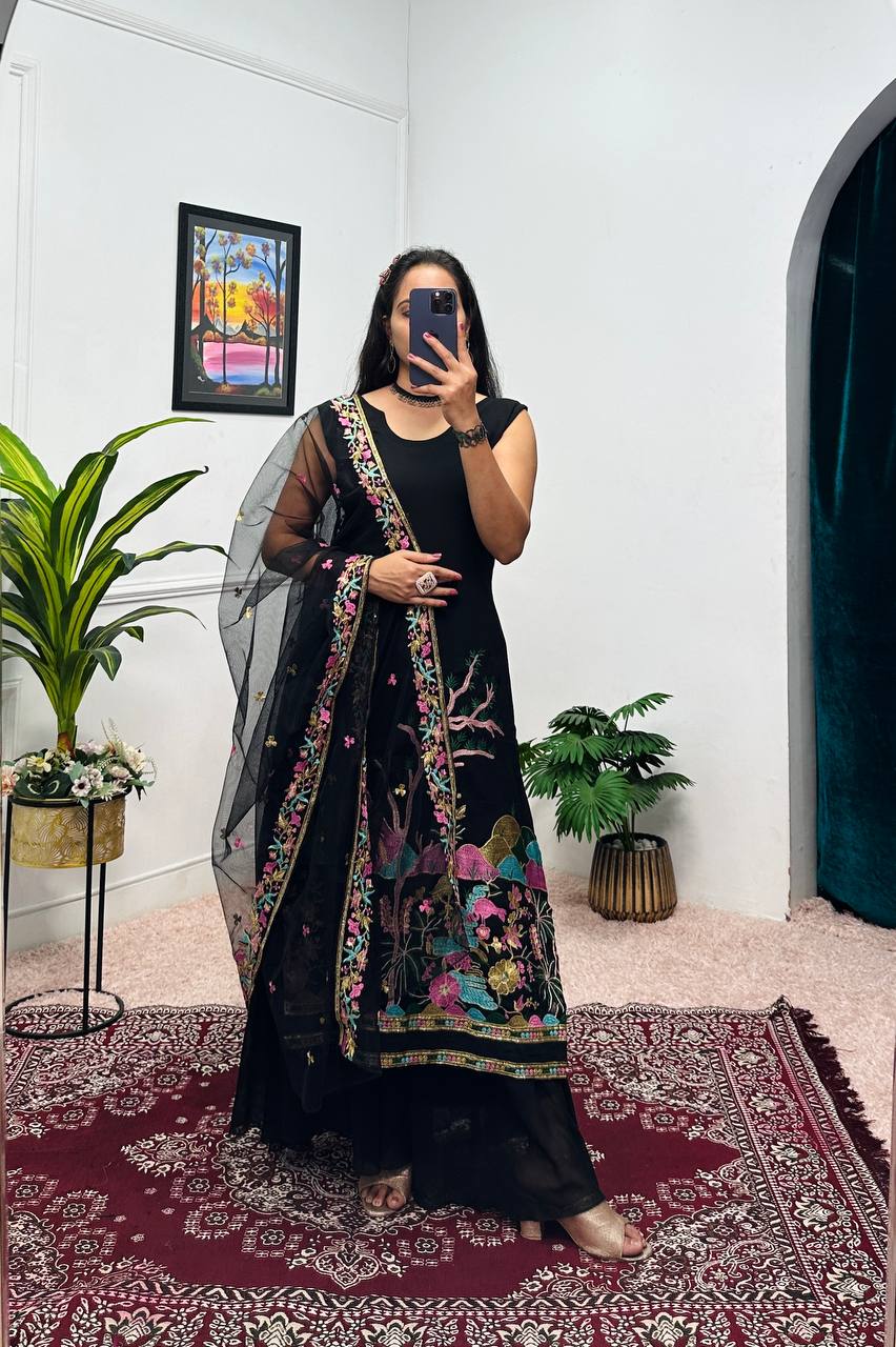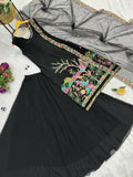 Elegant Blooming Faux Georgette Kurti, Lehenga & Dupatta Set with Embroidery & Cut-Work Details