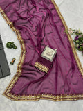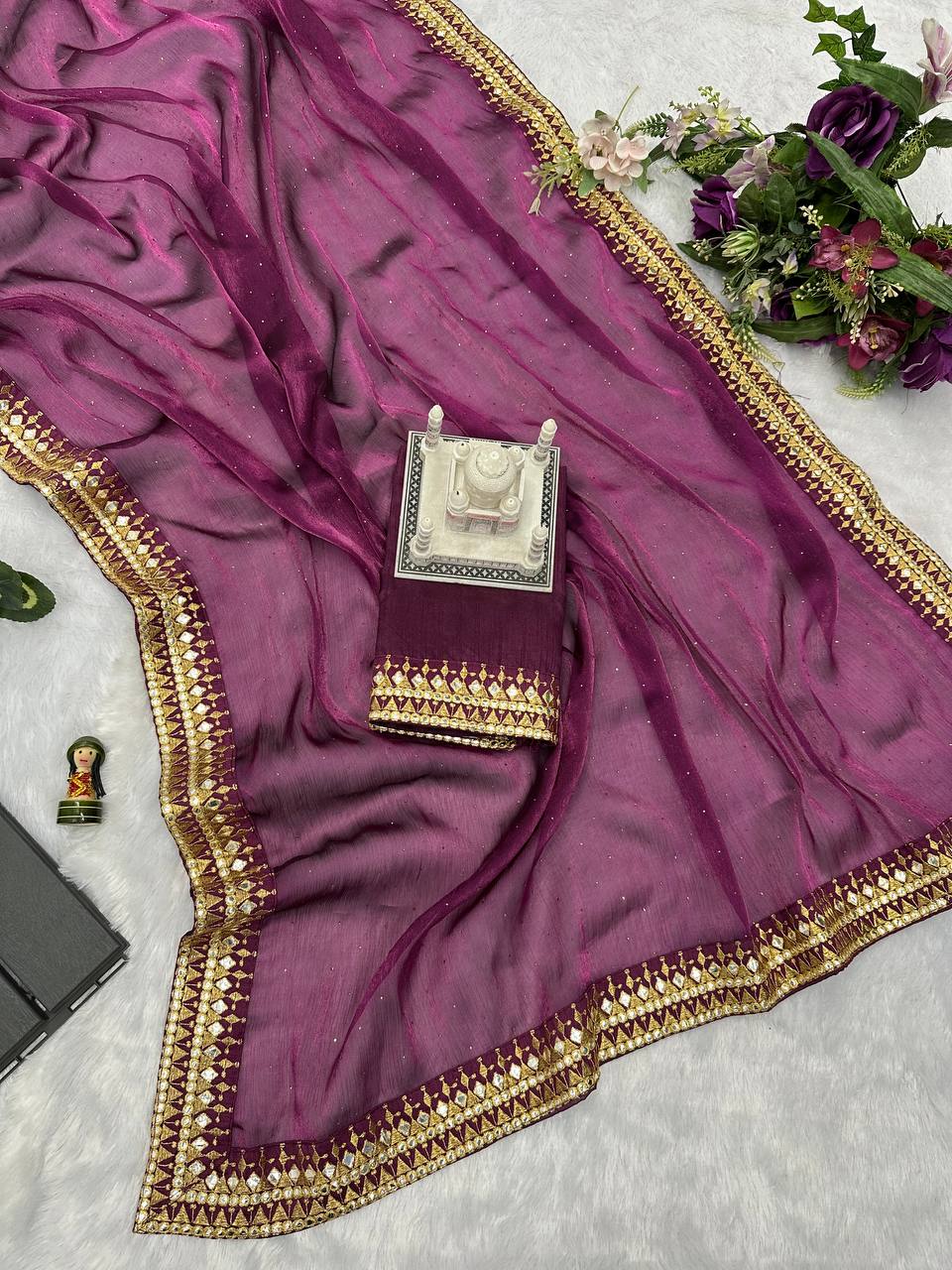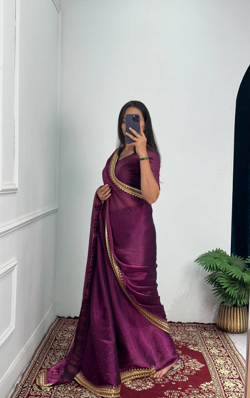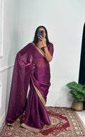 Elegant Burberry Saree with Foil & Zari Embroidery and Crystal Diamond Accents (Maroon)