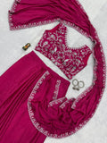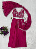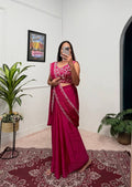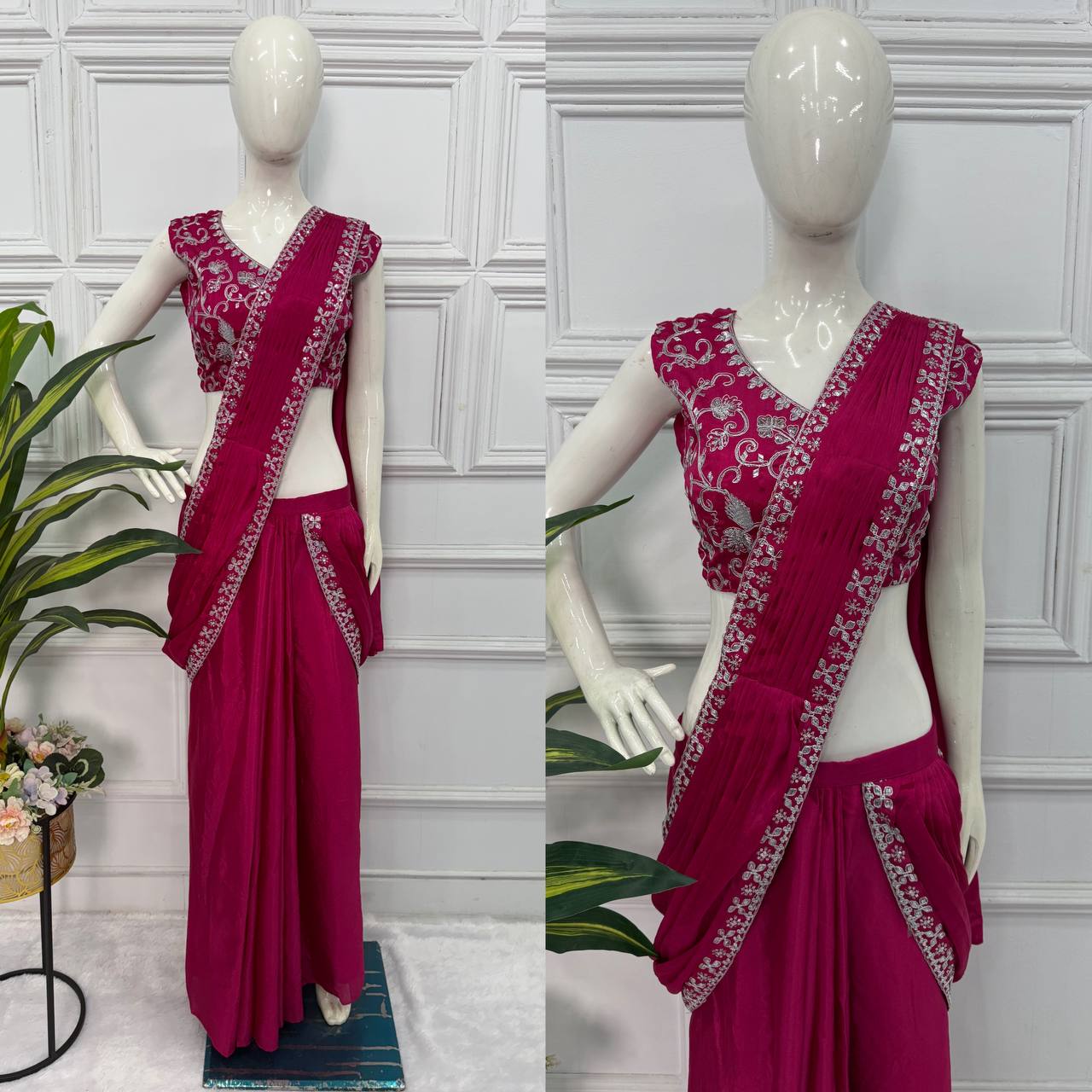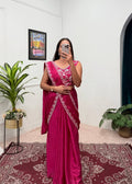 Elegant Chinon Ready-to-Wear Saree with Embroidered Lace & Blouse (Pink)