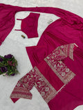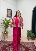 Elegant Chinon Saree Set with Embroidered Koti and Full Stitch Blouse (Pink)
