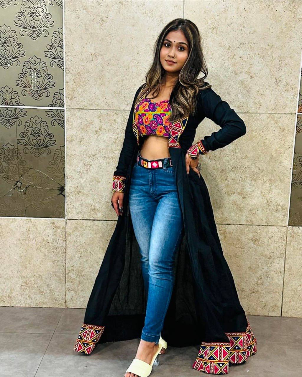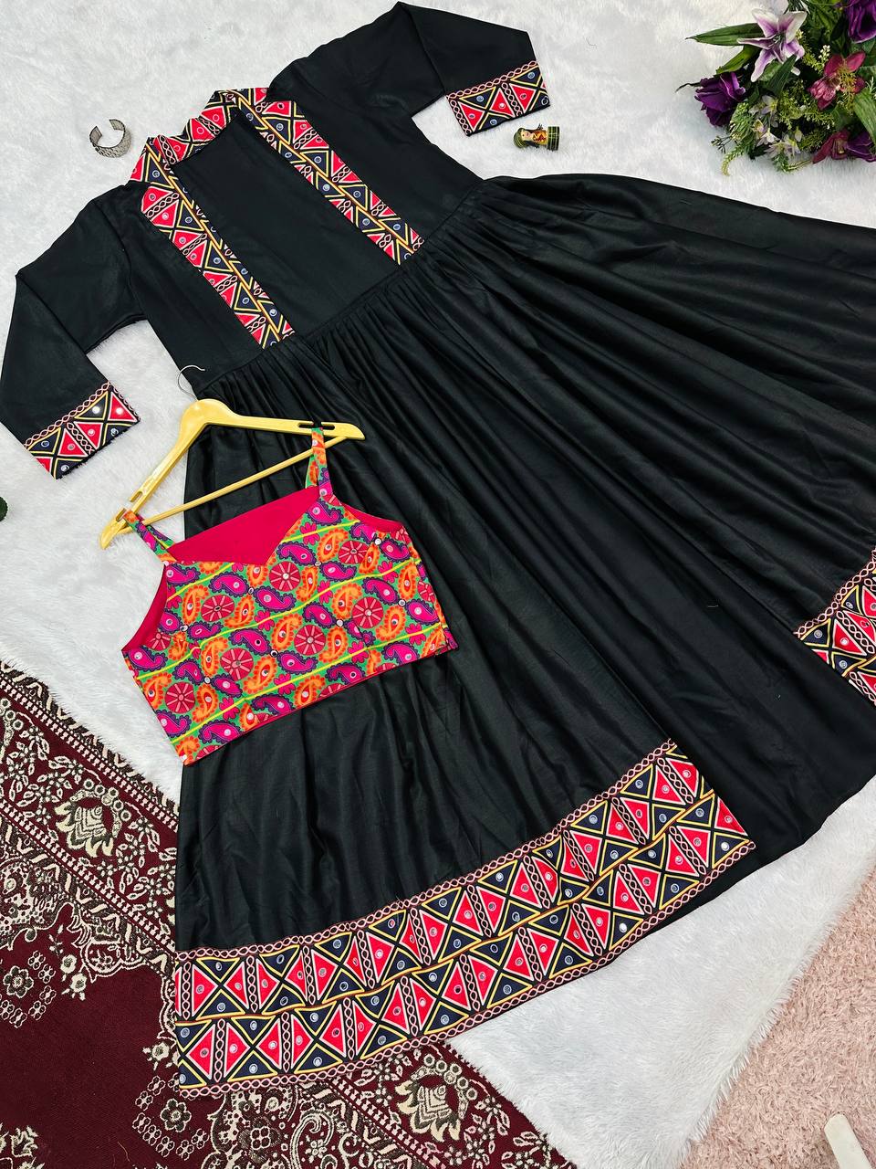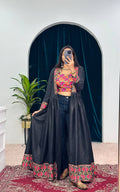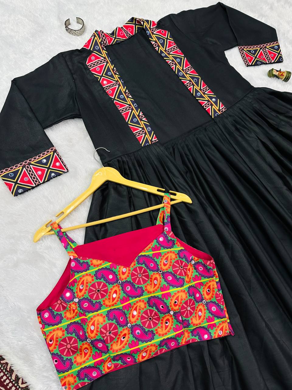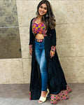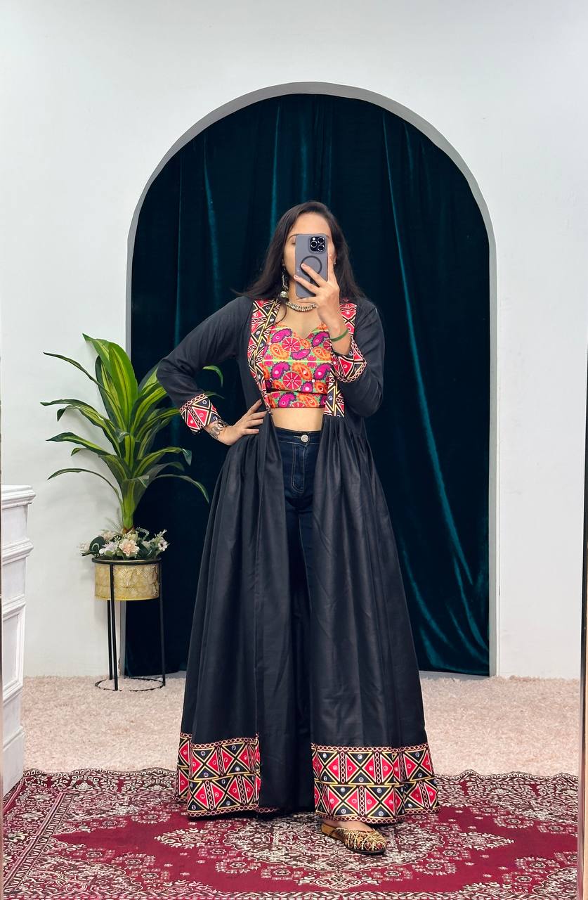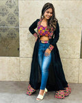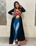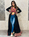 Elegant Cotton Shrug & Blouse Set with Printed Lace and Real Mirror Work