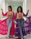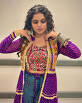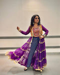 Elegant Faux Georgette Embroidered Shrug with Heavy Work Blouse (Purple)