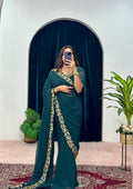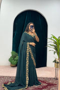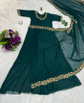 Elegant Faux Georgette Gown with Attached Pallu & Embroidery Lace Dupatta (Green)