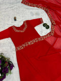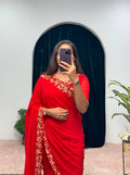 Elegant Faux Georgette Gown with Attached Pallu & Embroidery Lace Dupatta (Red)