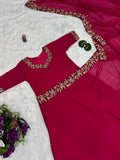 Elegant Faux Georgette Gown with Attached Pallu & Embroidery Lace Dupatta (Pink)