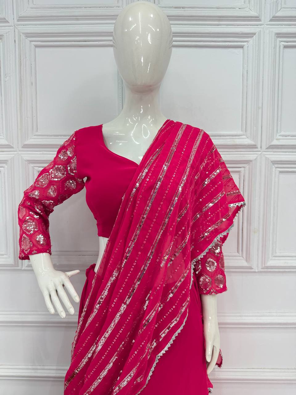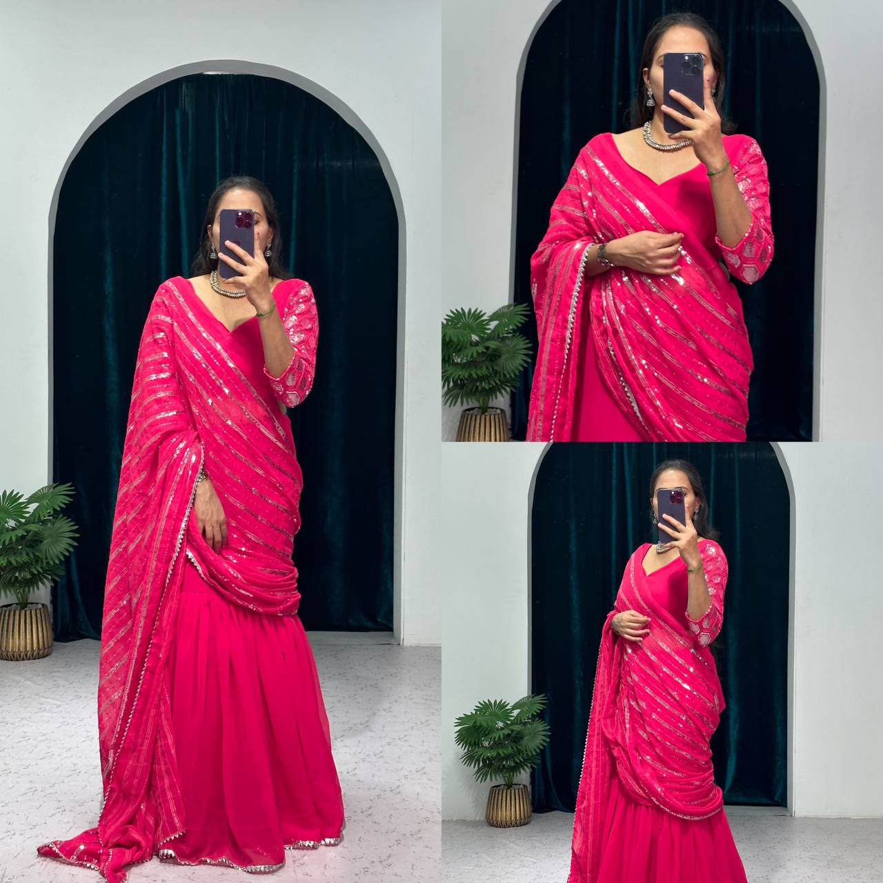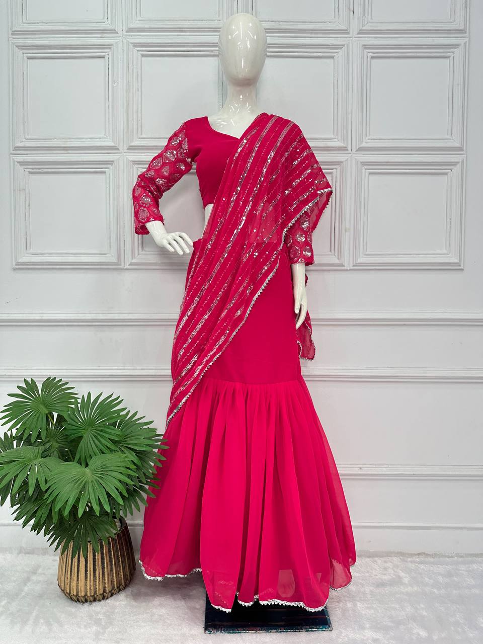 Elegant Faux Georgette Lehenga Saree with Embroidered Sequin Work & Pallu + Unstitched Blouse