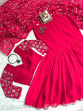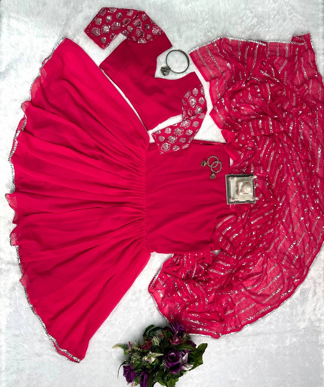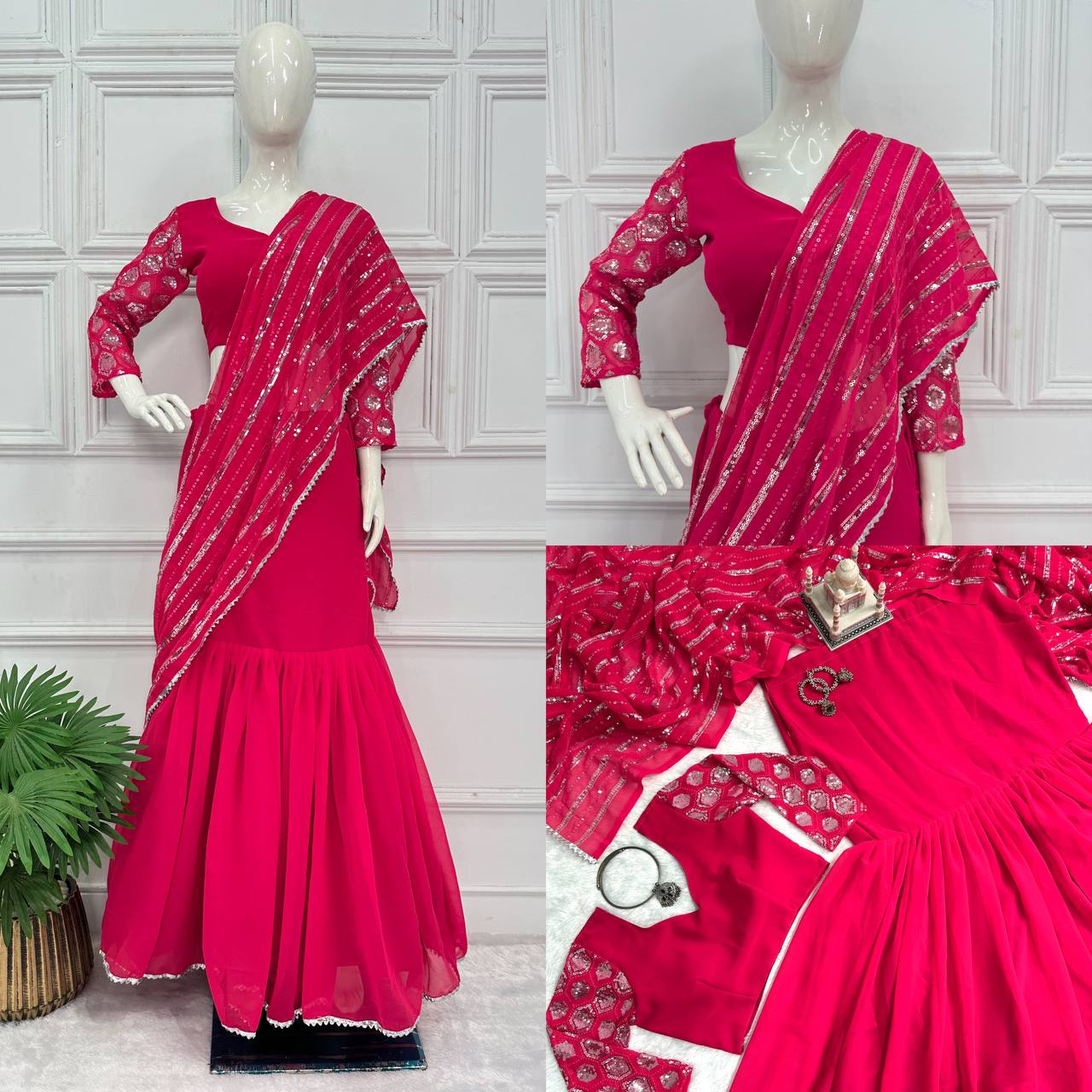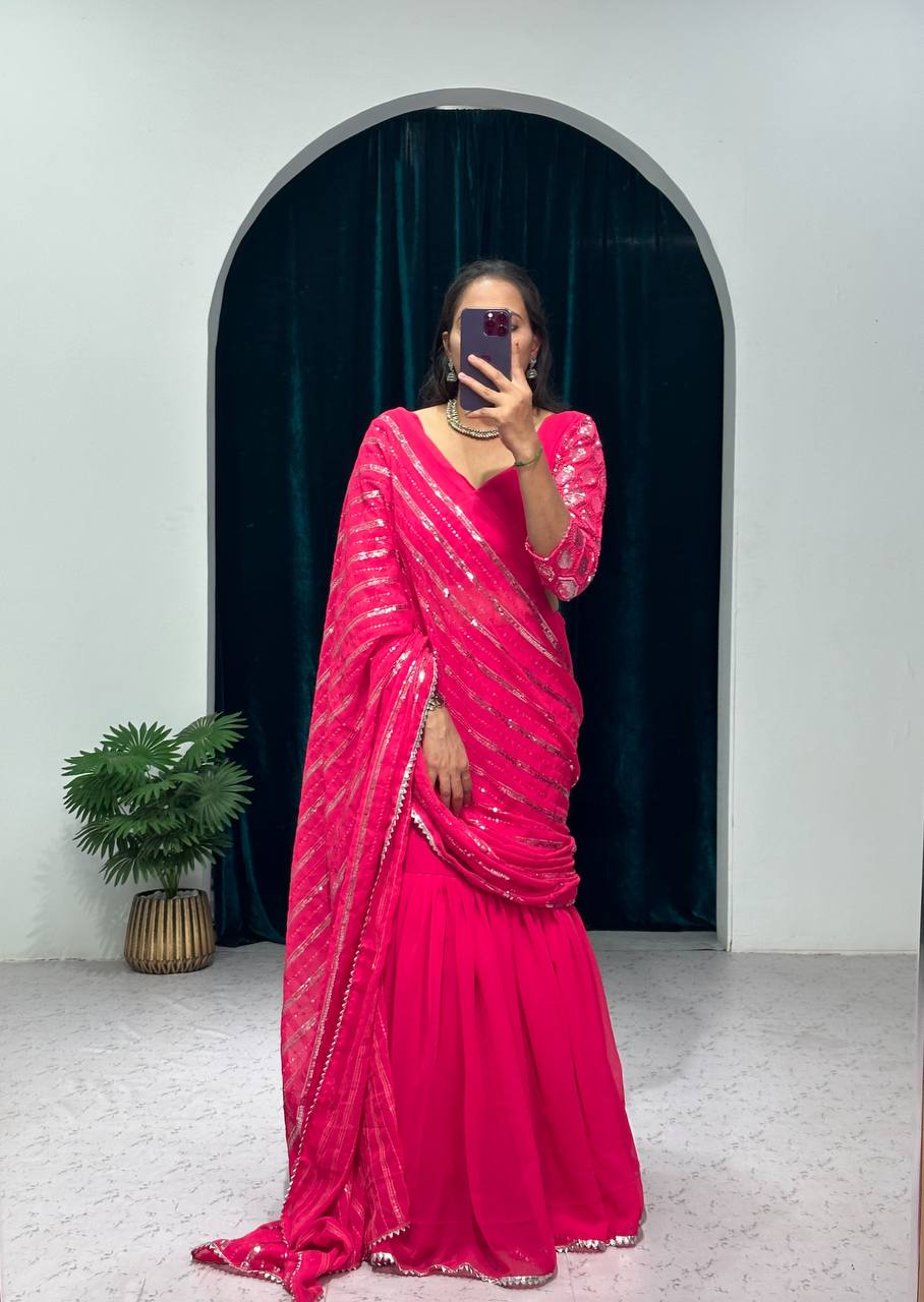 Elegant Faux Georgette Lehenga Saree with Embroidered Sequin Work & Pallu + Unstitched Blouse