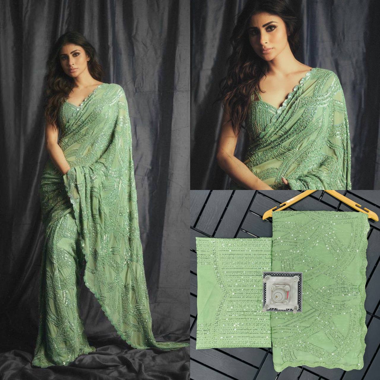 Elegant Faux Georgette Saree with Sequin and Zari Embroidery, Featuring Cut Work Lace Border