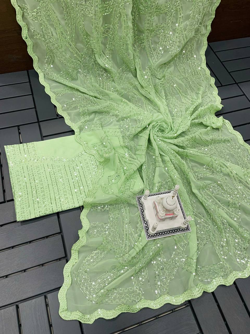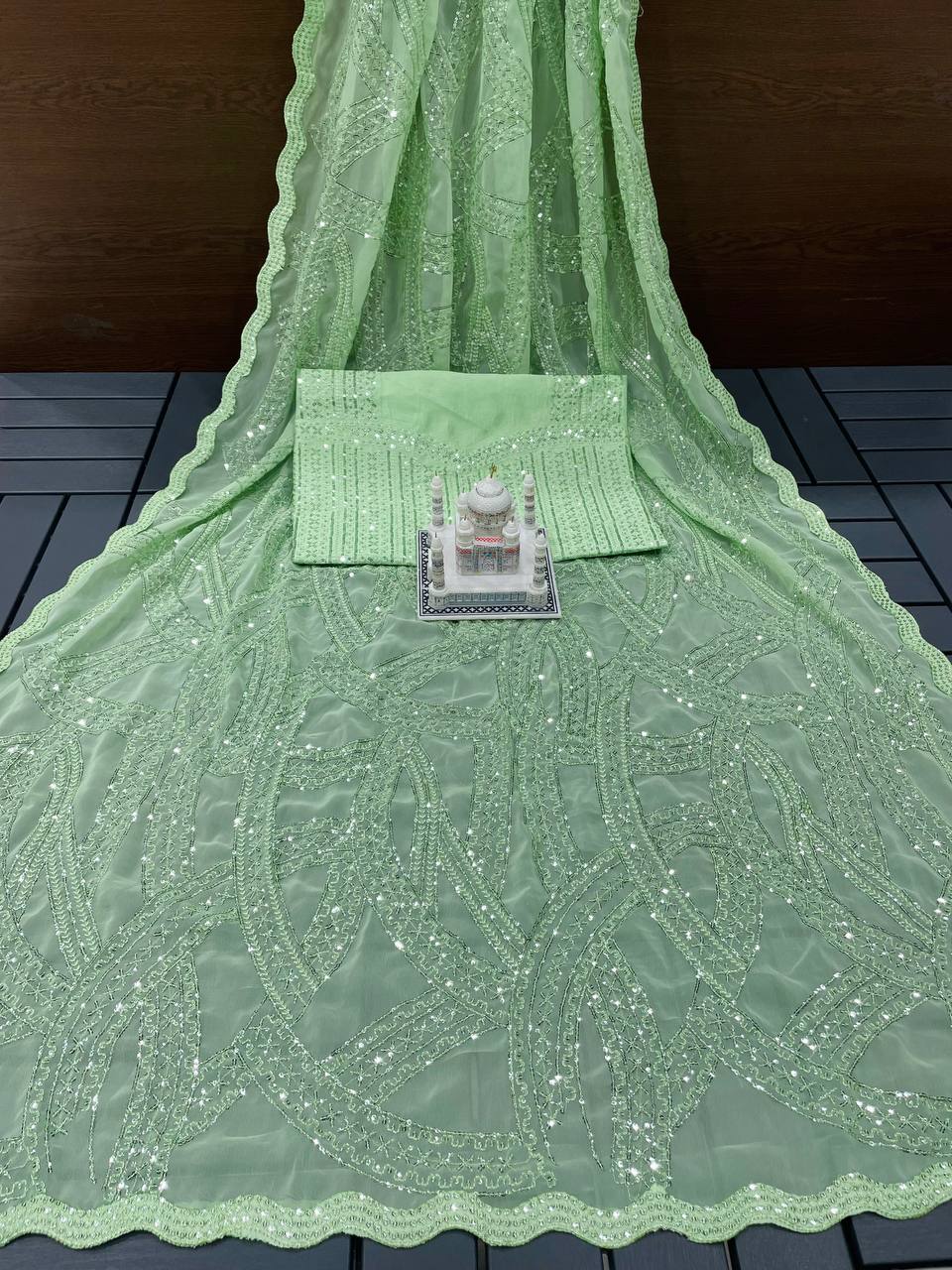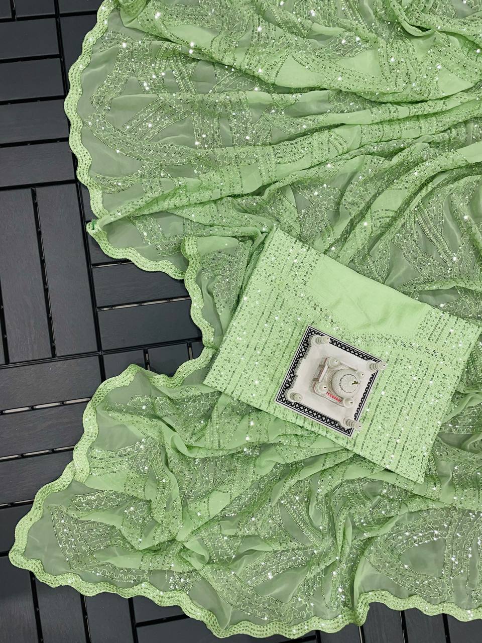 Work:- 3mm SEQUINS WITH ZARI EMBROIDERY WORK WITH CUT WORK LACE BORDER