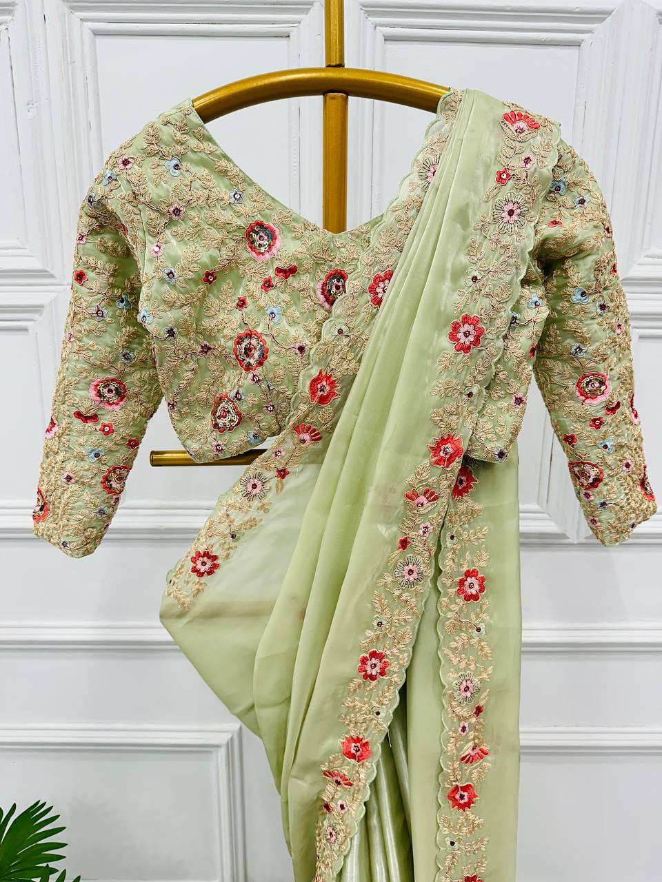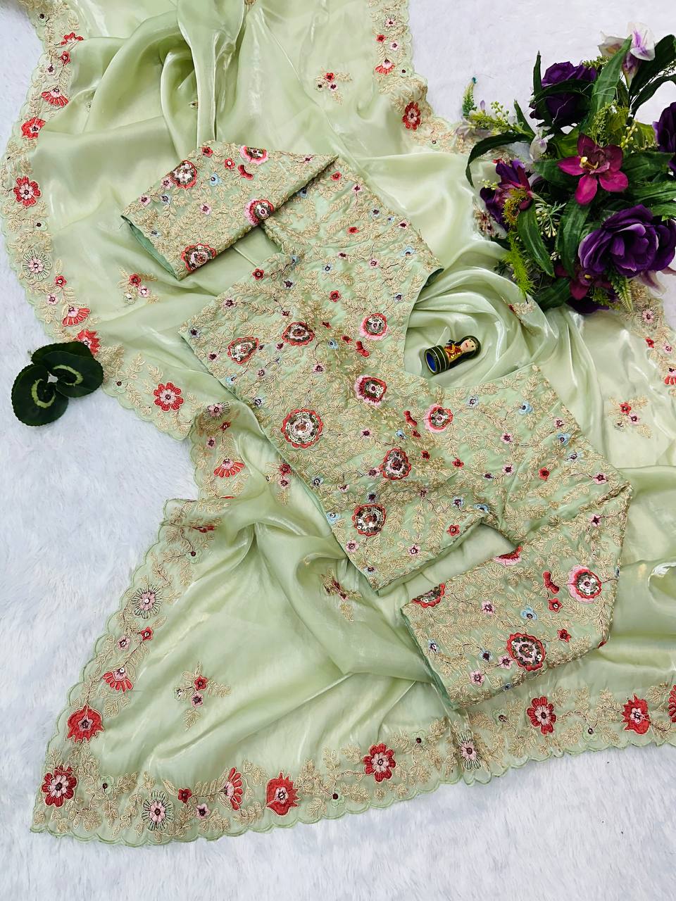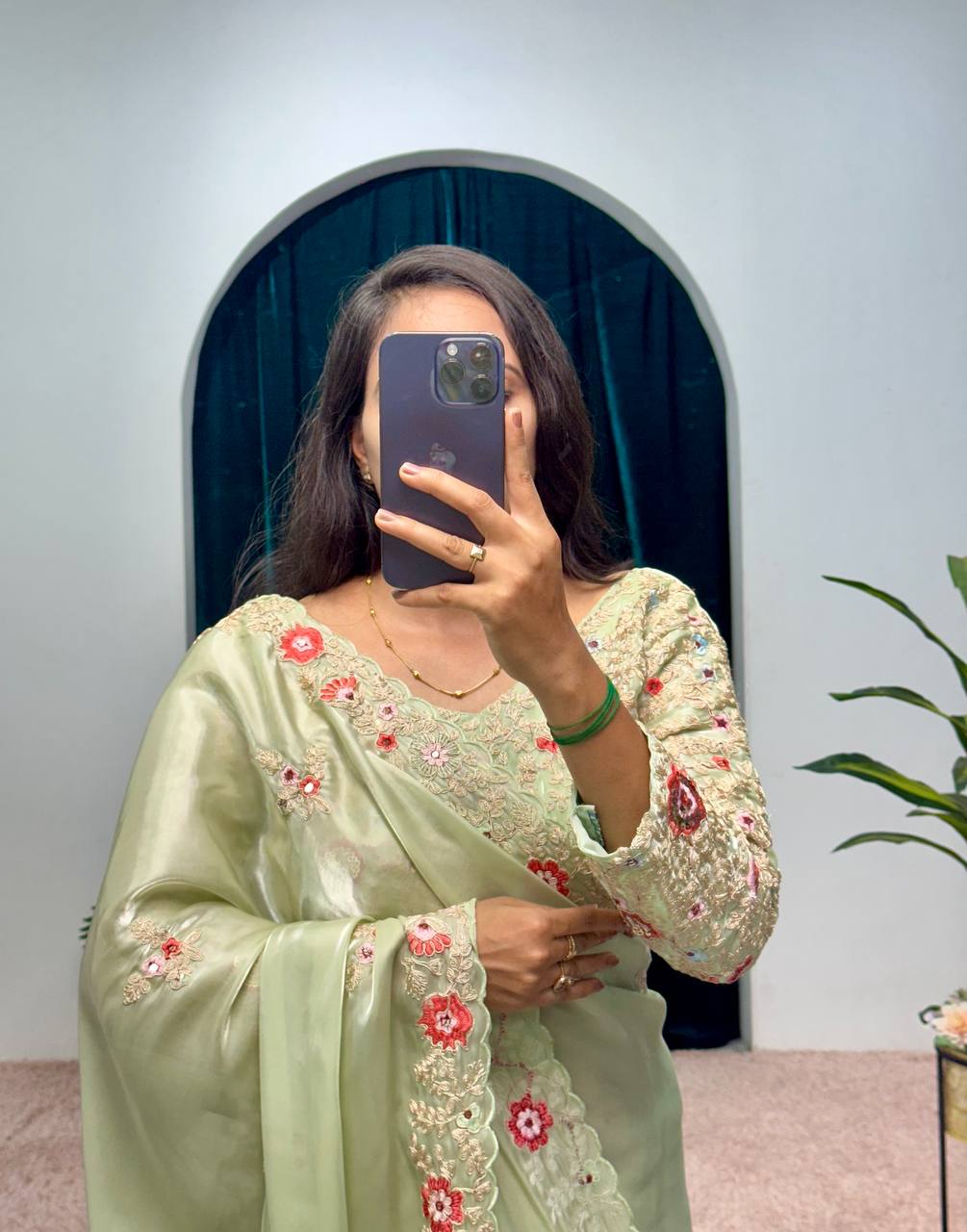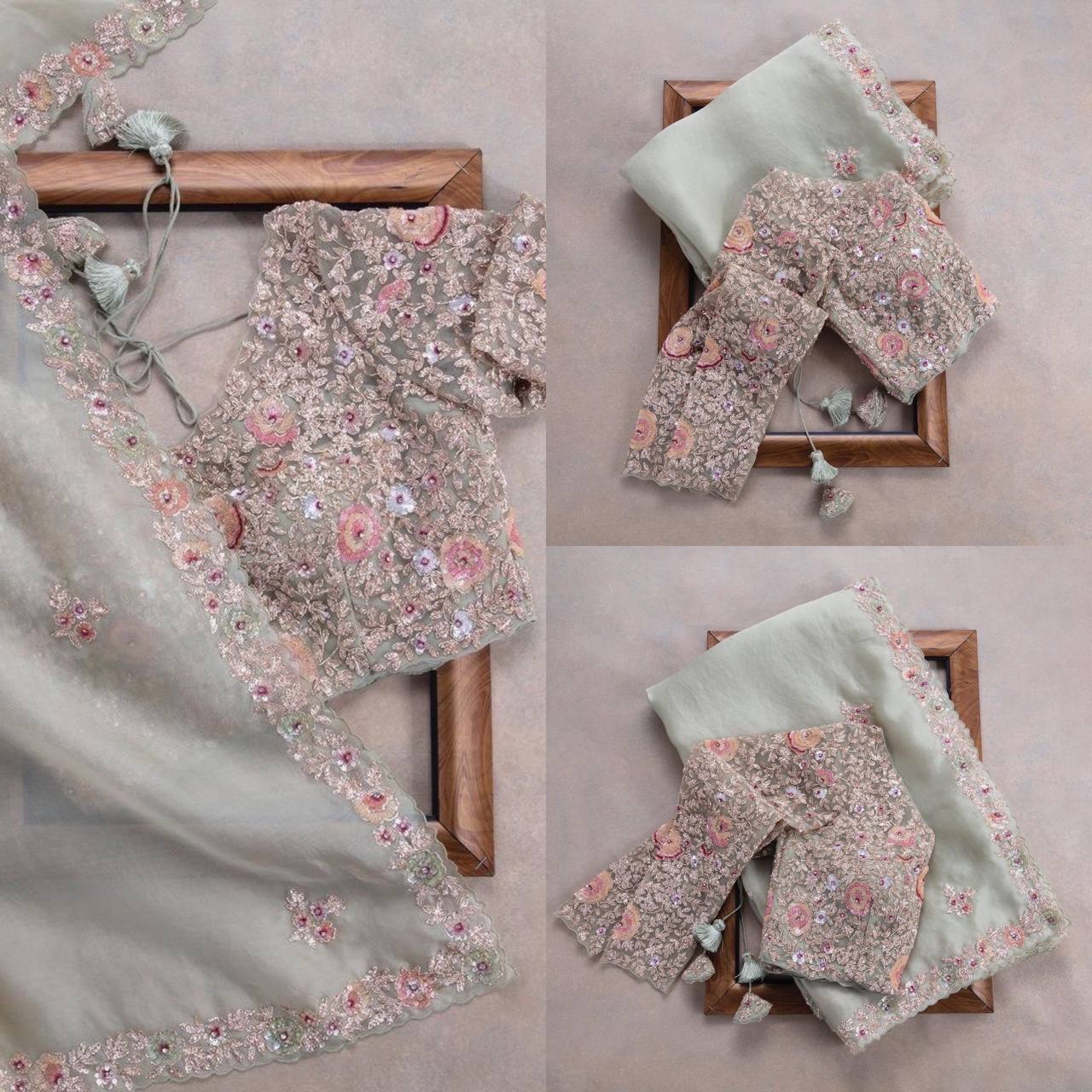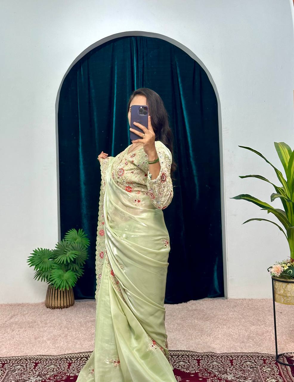 Elegant Jimmy Choo Saree with Cotton Thread & Sequin Embroidery
