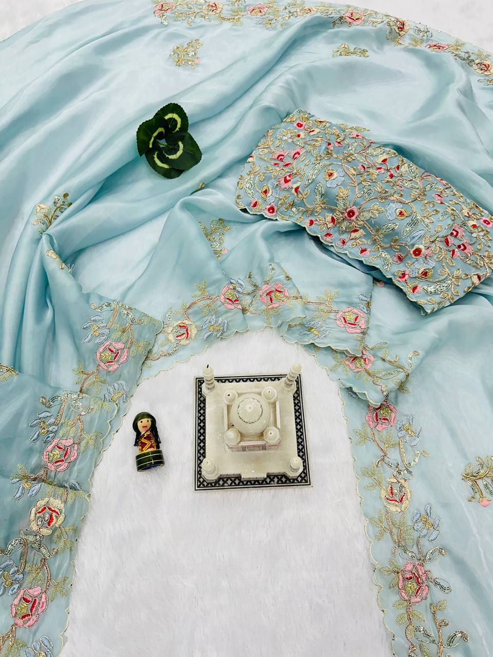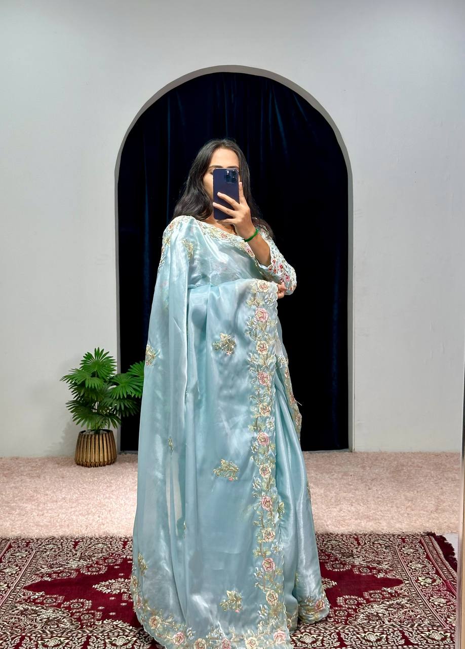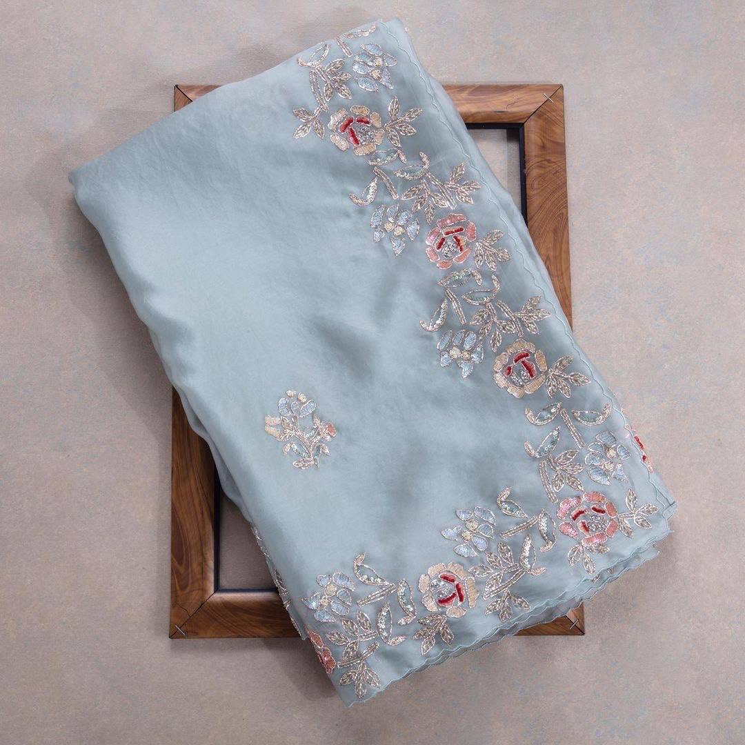 Elegant Jimmy Choo Saree with Cotton Thread & Sequins Embroidery