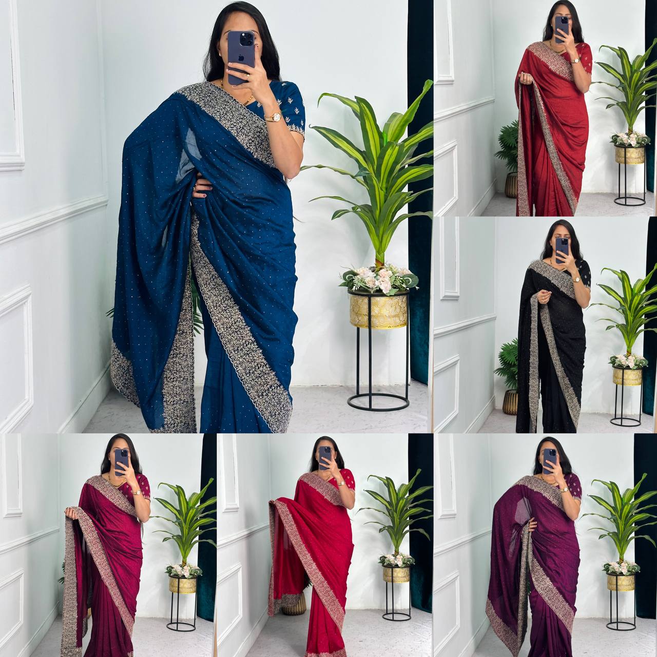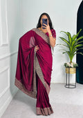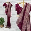 Elegant Jimmy Choo Saree with Cotton Thread & Sequins Embroidery (Maroon)