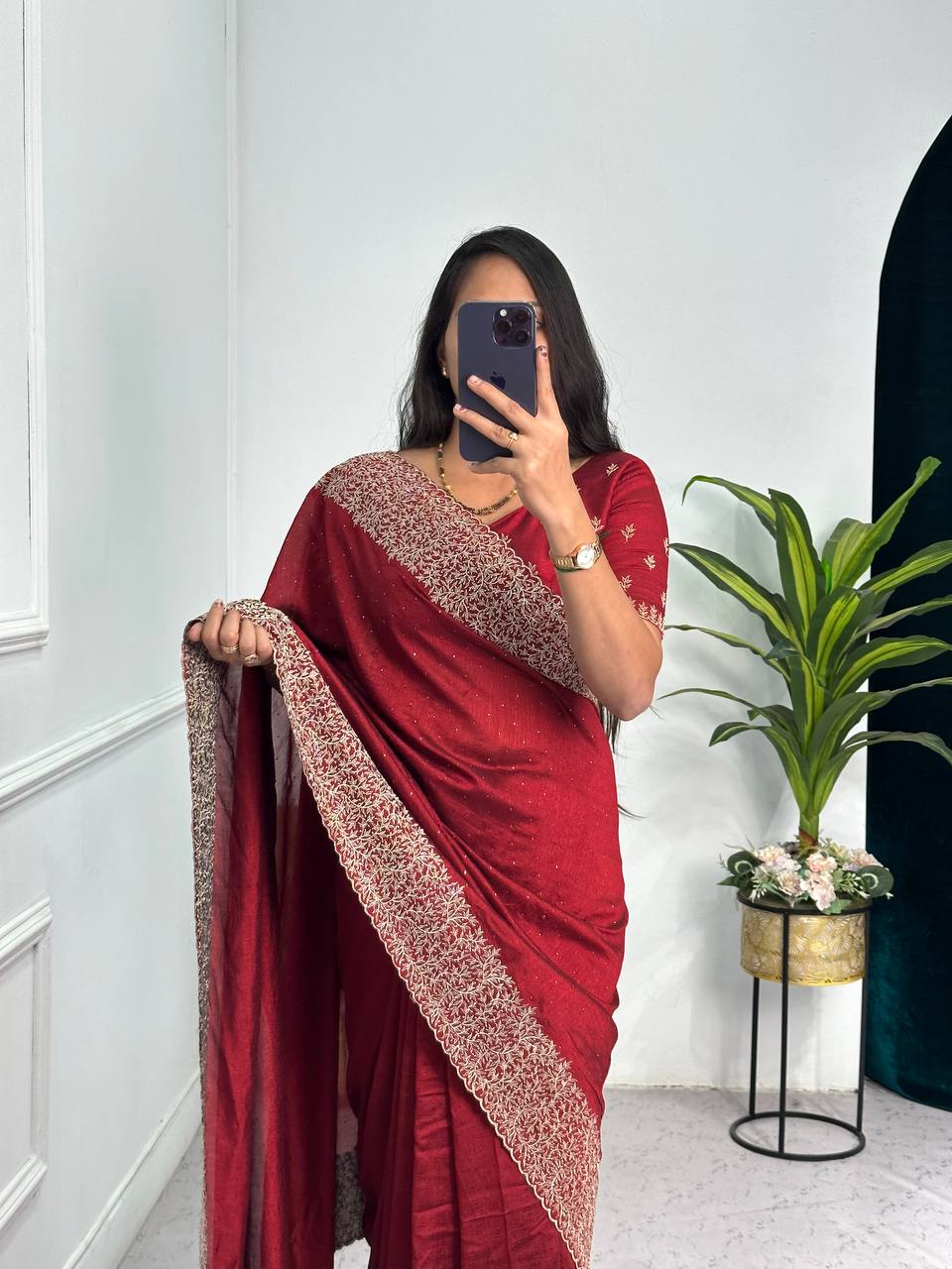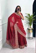 Elegant Jimmy Choo Saree with Cotton Thread & Sequins Embroidery (Red)