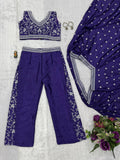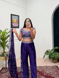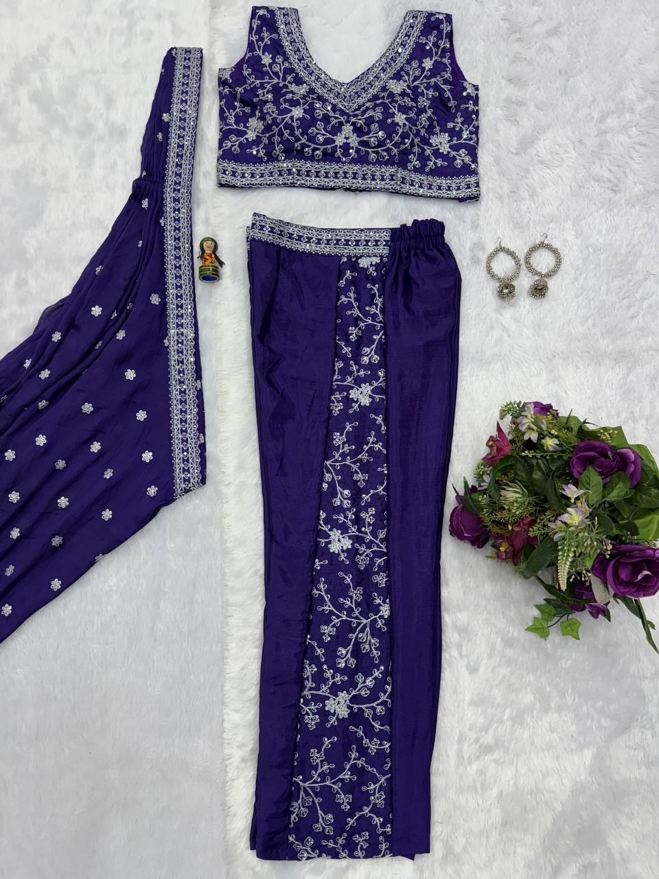 Embroidered Chinon Palazzo Set with Blouse & Dupatta