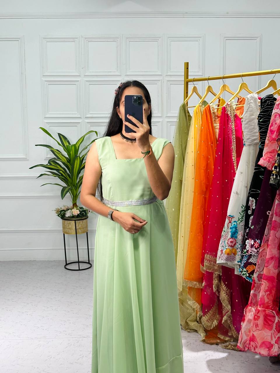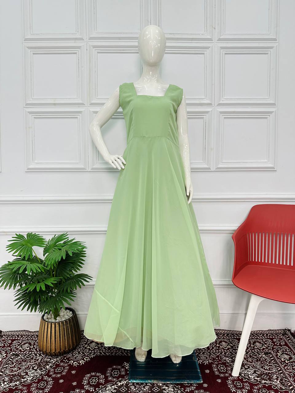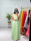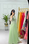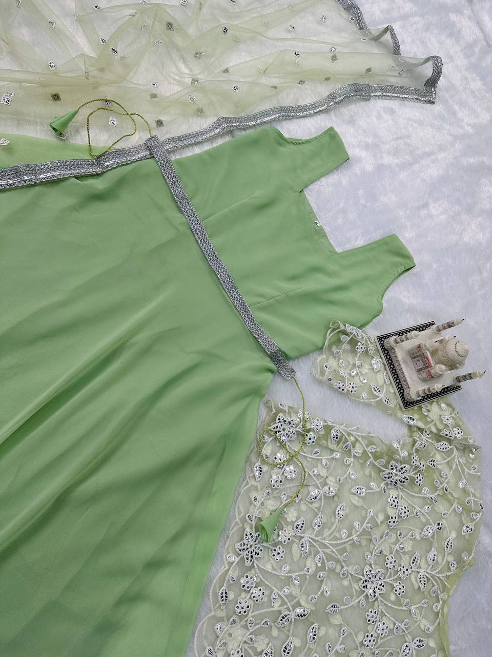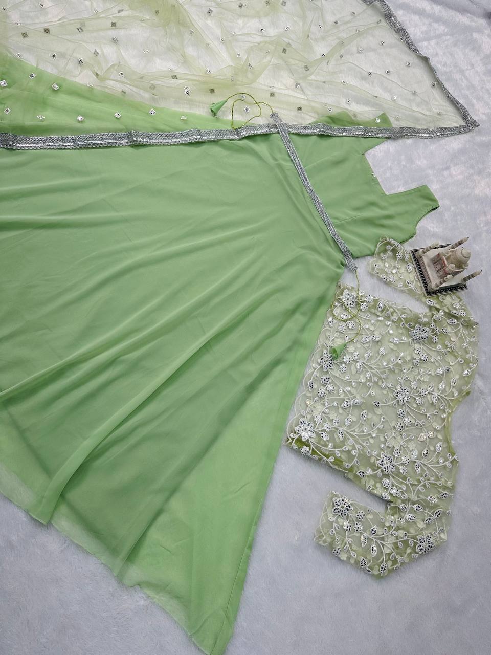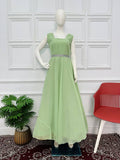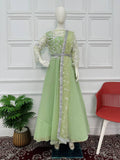 Embroidered Faux Georgette Gown with Net Dupatta and Koti
