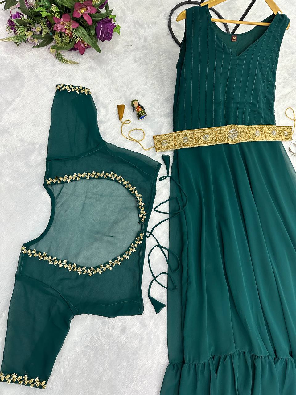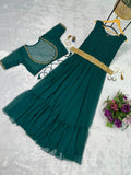 Embroidered Faux Georgette Gown with Ruffle Flair & Matching Koti (Green)