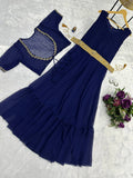 Embroidered Faux Georgette Gown with Ruffle Flair & Matching Koti (Blue)