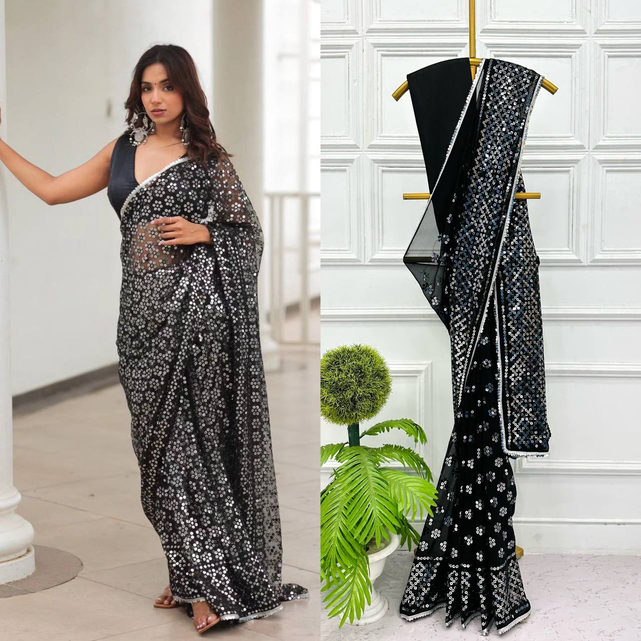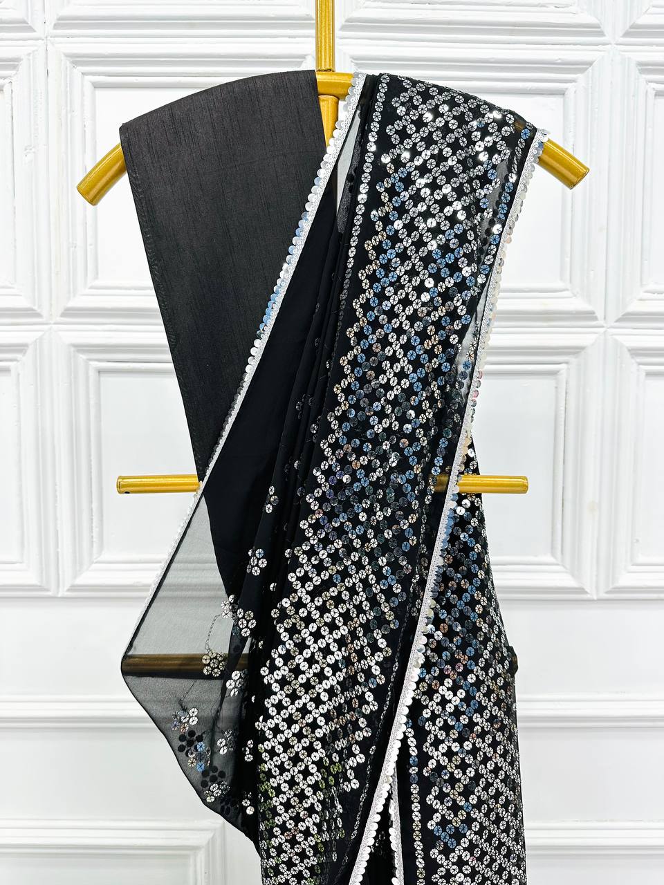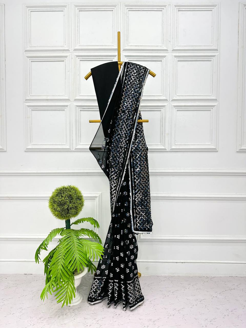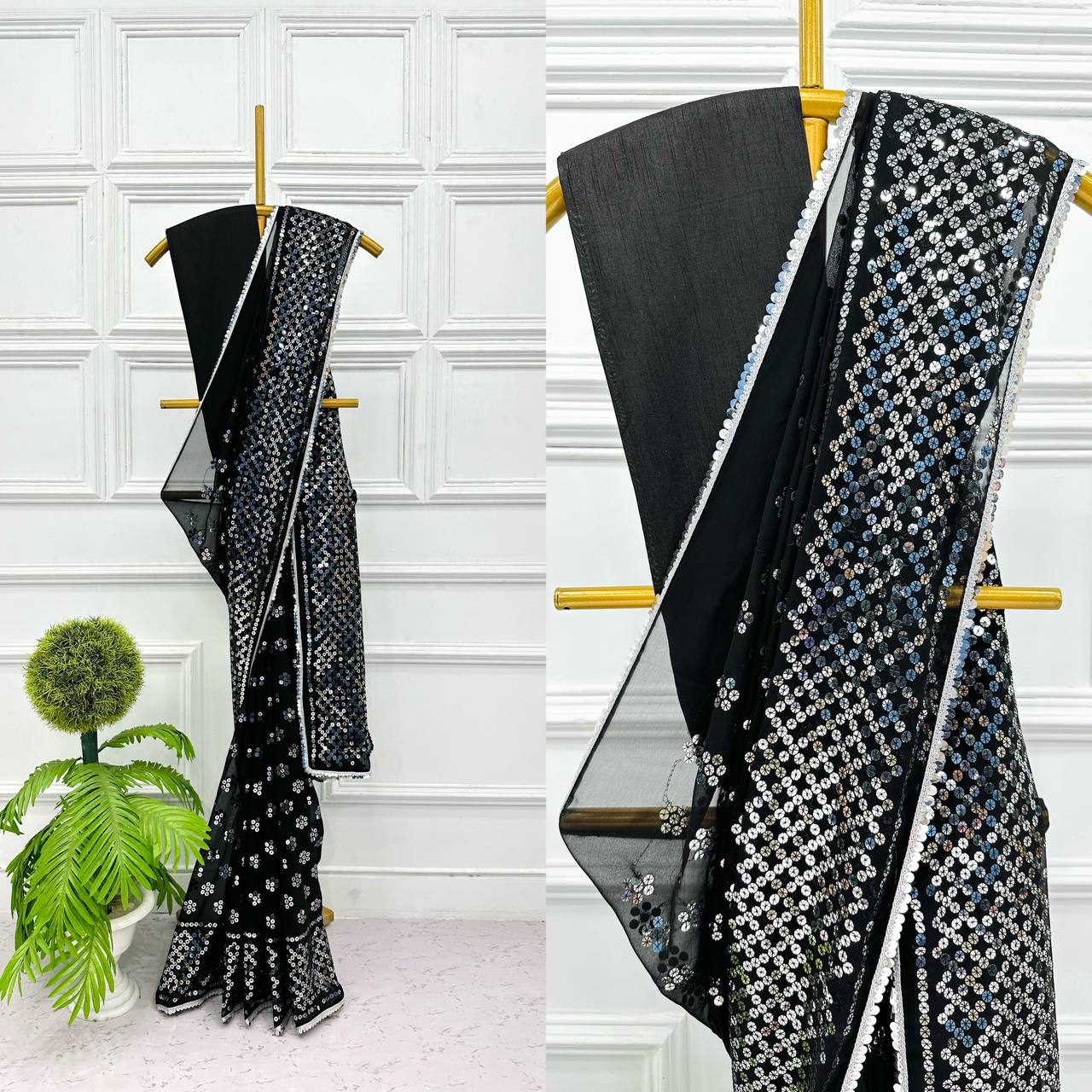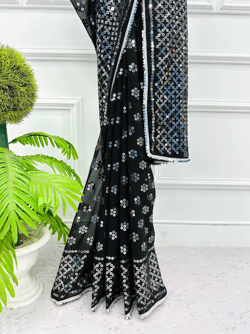 Embroidered Georgette Saree with Sequin Detailing and Cotton Thread Work
