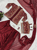 Embroidered Rangoli Silk Saree with Banglory Blouse & Koti - Ready-to-Wear with Waist Belt (Brown)