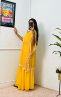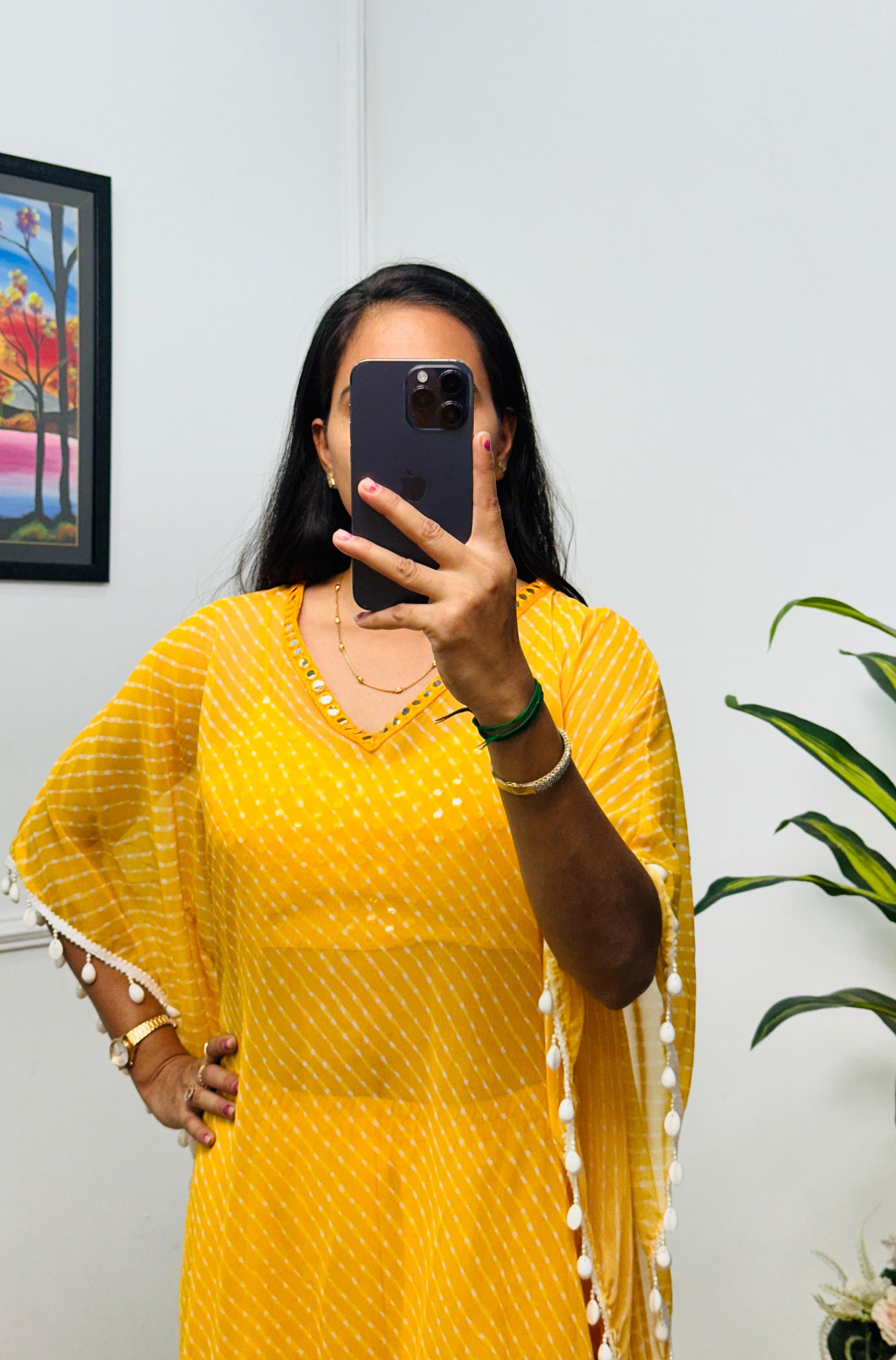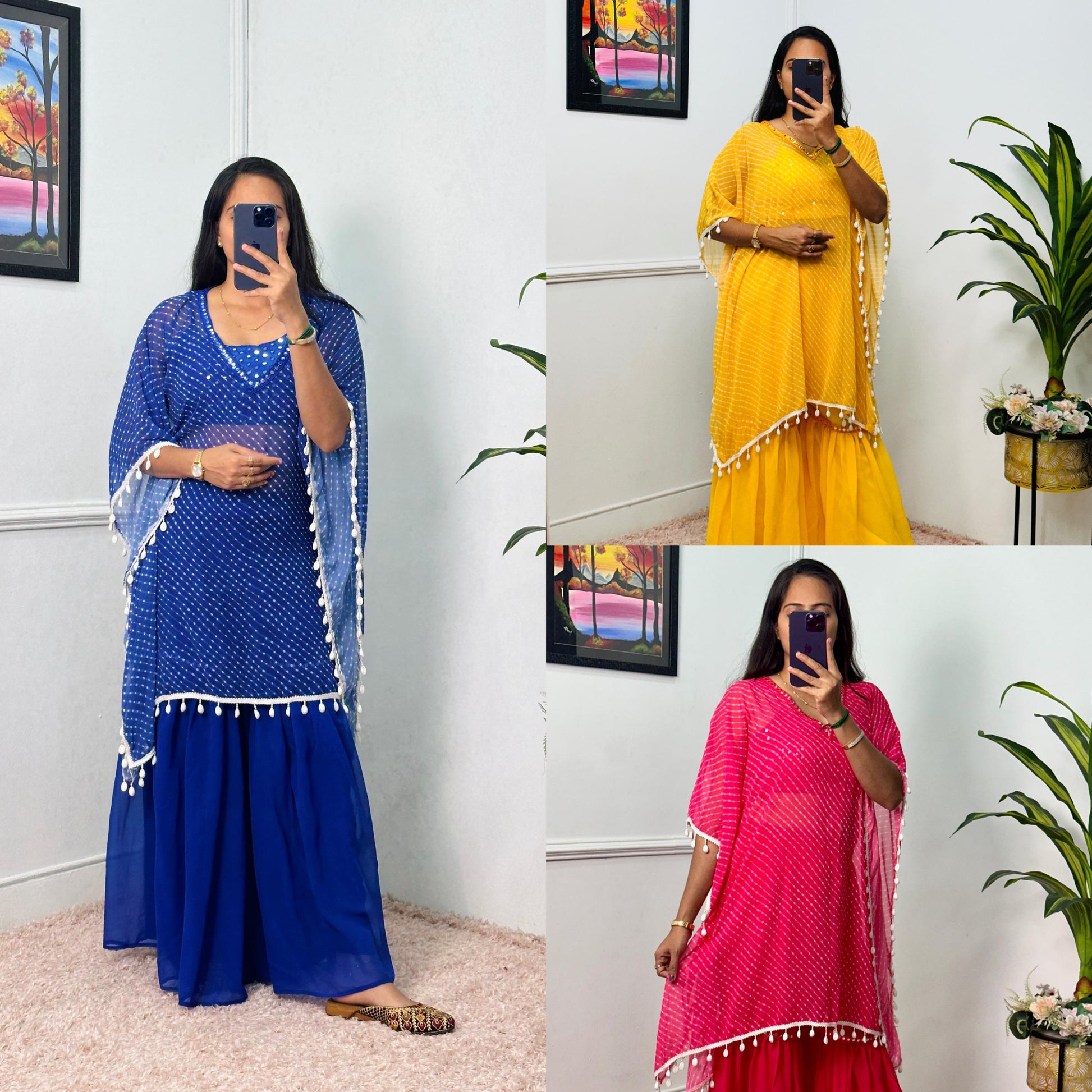 Georgette Sarara with Embroidered Sequin Blouse & Printed Shrug (Yellow)