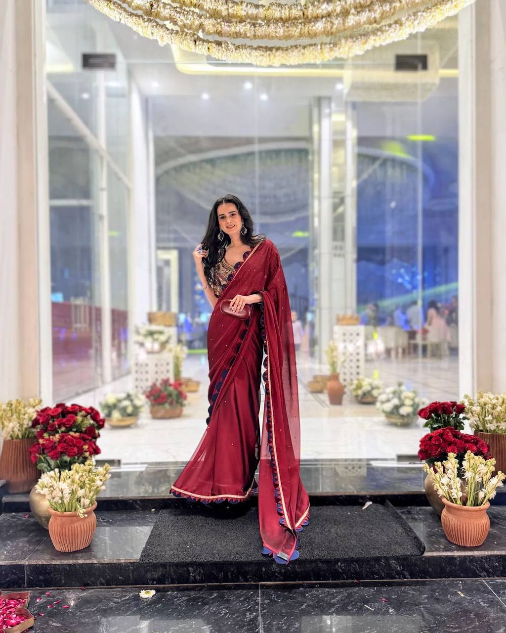 Graceful Pearl Moti Work Saree on Blooming Rangoli Fabric with Cutwork Border