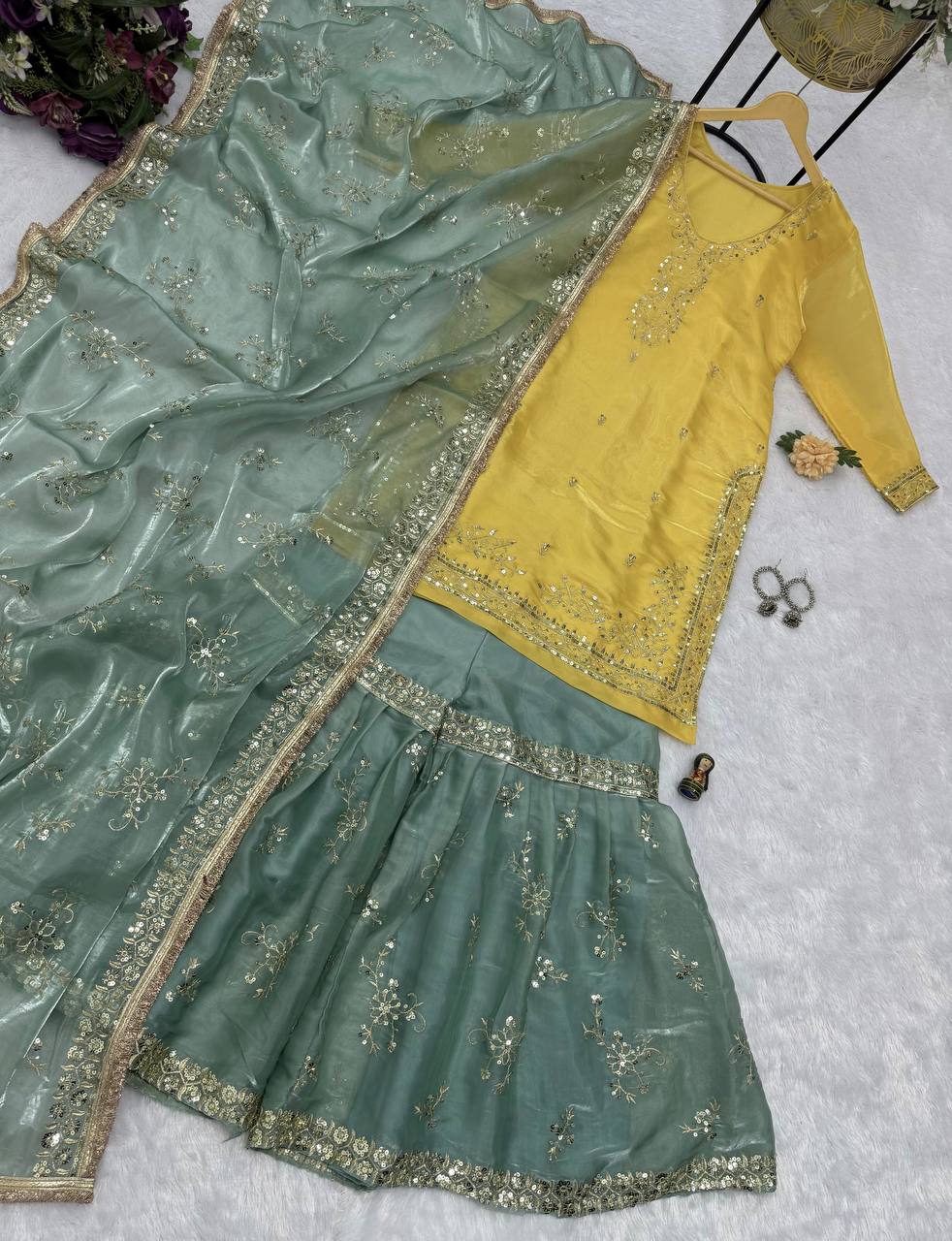 Luxury Jimmy Choo Embroidered Set with Dupatta & Bottom