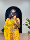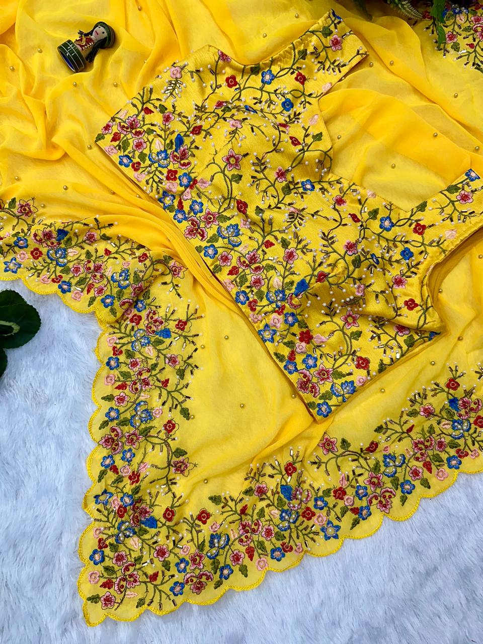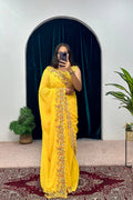 Premium Embroidered Faux Georgette Saree with Traditional Handwork Border (Yellow)