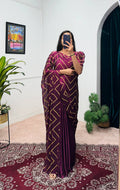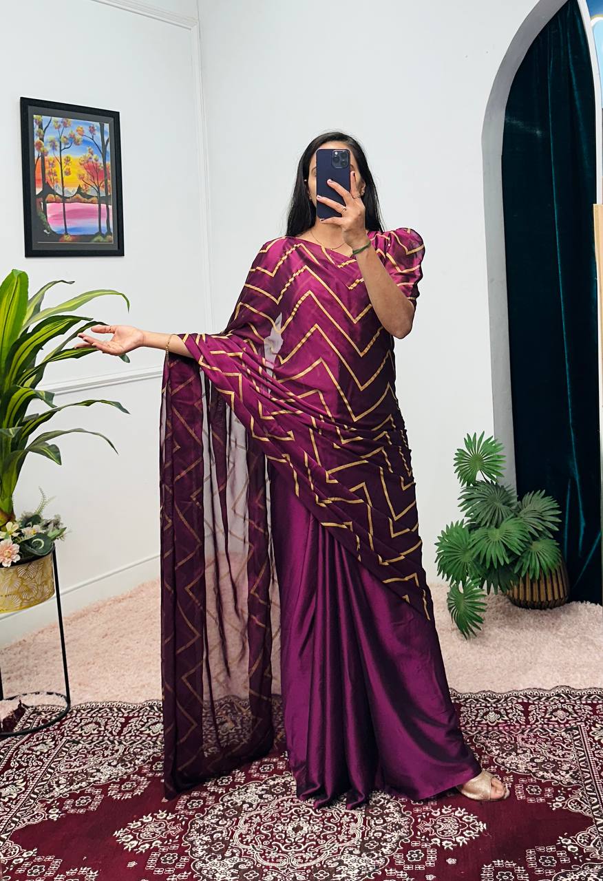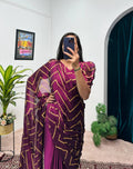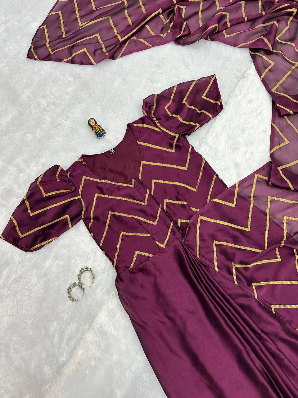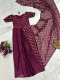 Rangoli Pleated Gown with Foil Printed Dupatta & Attached Pallu (Purple)