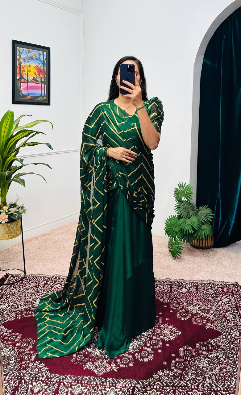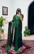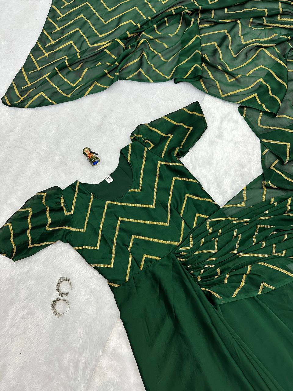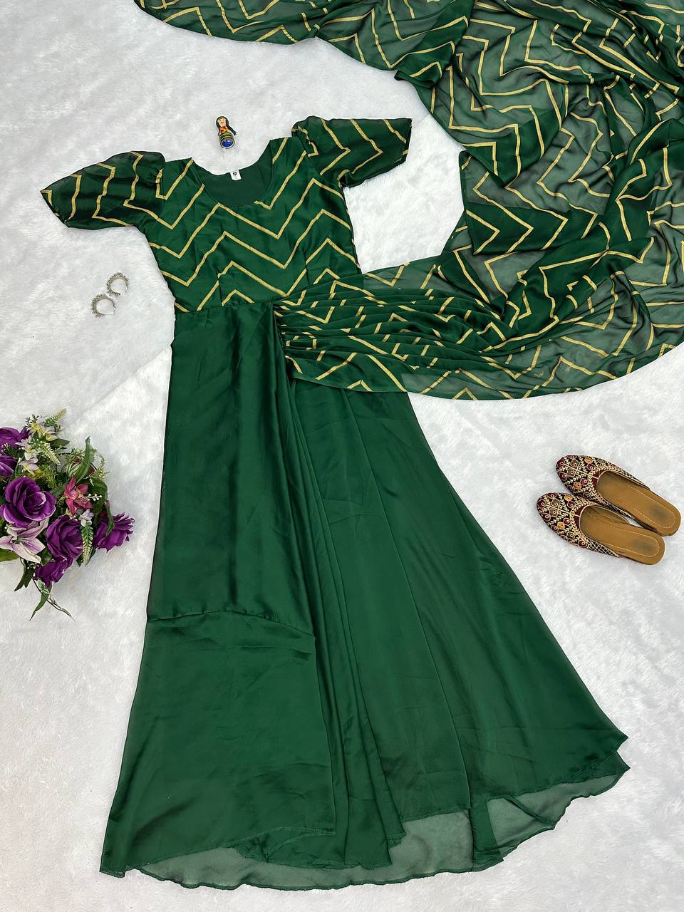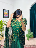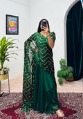 Rangoli Pleated Gown with Foil Printed Dupatta & Attached Pallu (Green)