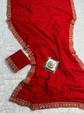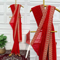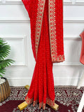 Red Georgette Saree with Heavy 3mm Sequins & Cotton Thread Embroidery