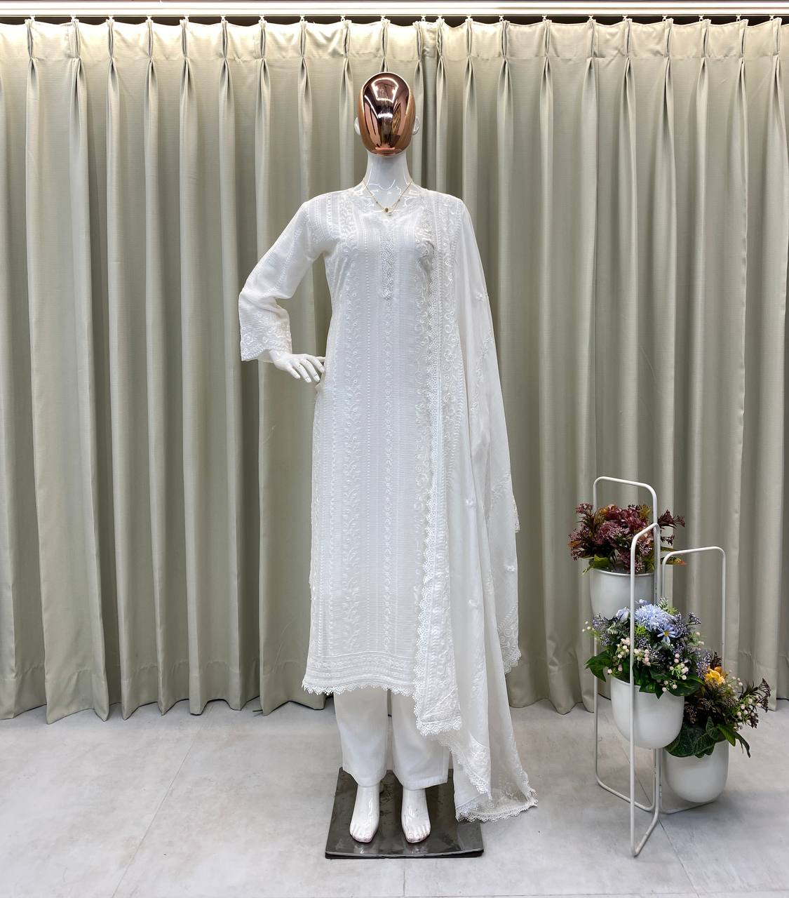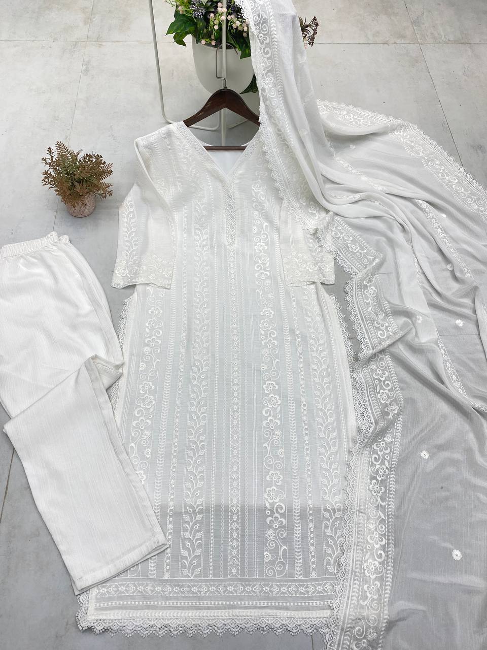 Running Wear Trending Chinin Top Cotton Thread Embroidered Work And Plazo With Dupatta