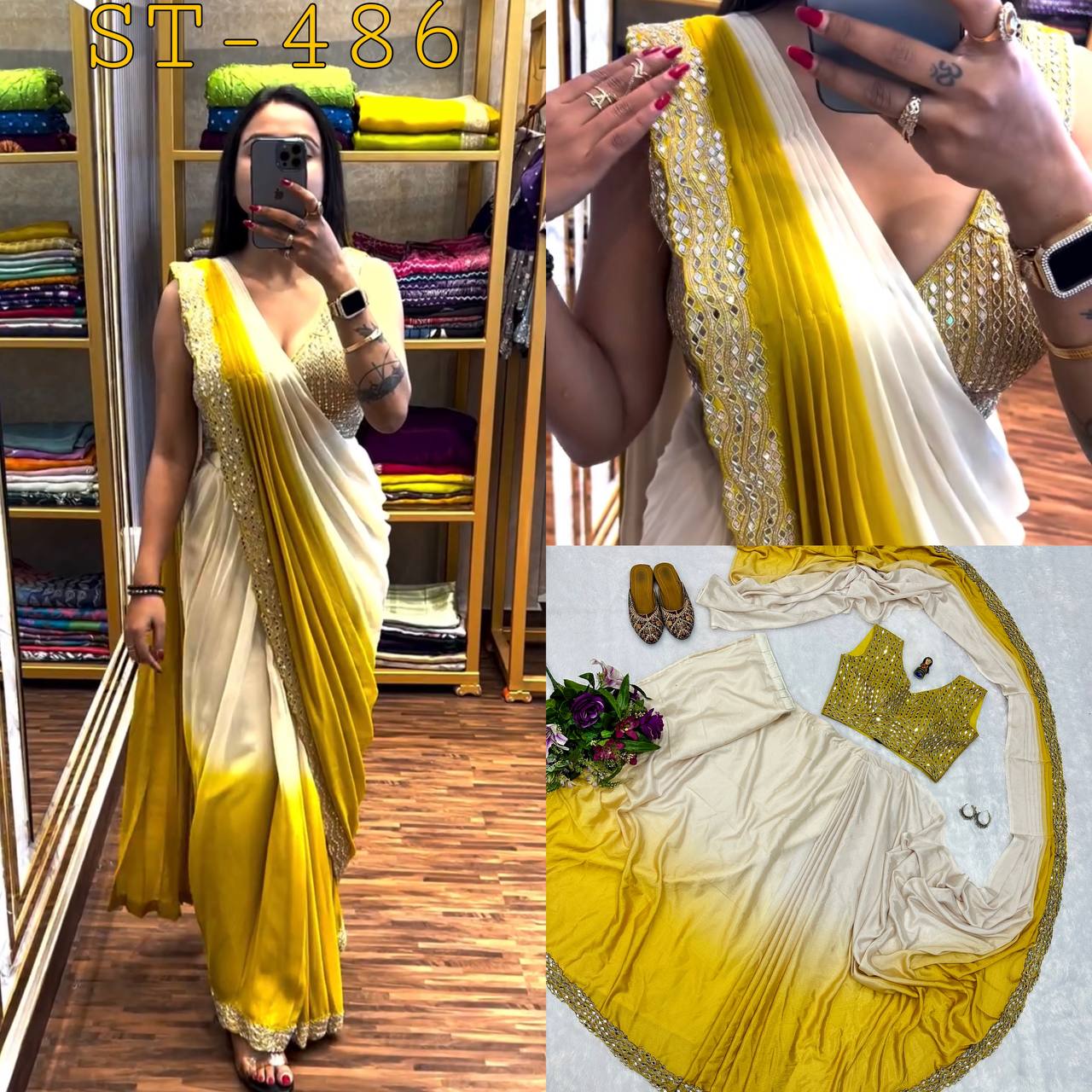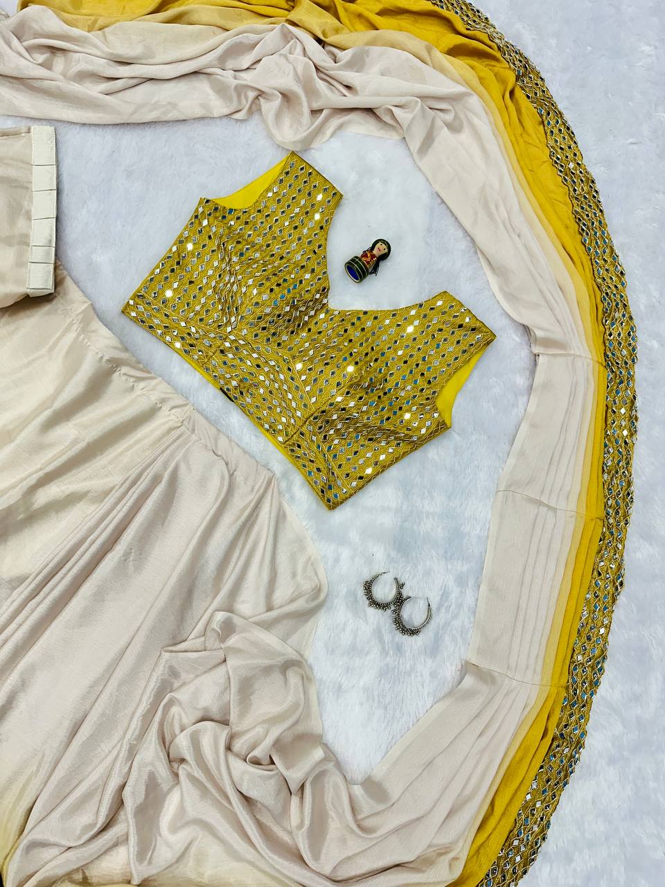 Stylish Drape Saree in Padding Chinon with Real Mirror and Lace Embroidery