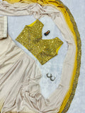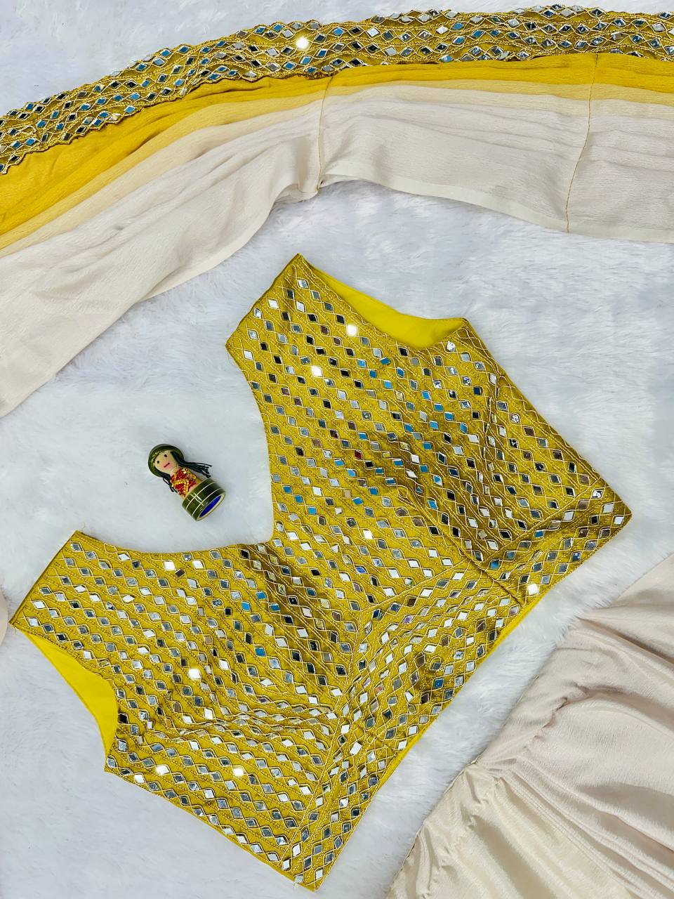 Work:- EMBROIDERY LACE BORDER WITH REAL MIRROR WORK, DRAPE PATTERN / 5.5 mtr