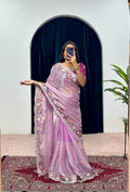 Traditional Blooming Rangoli Saree with Pearl Work & Cut Border (Purple)