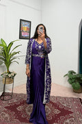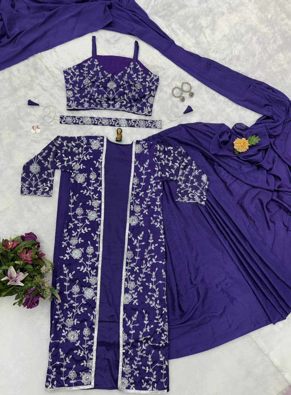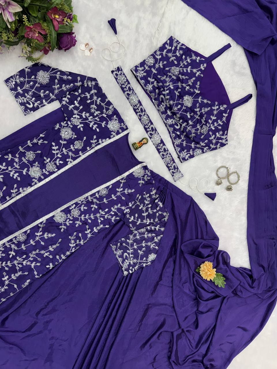 Traditional Chinon Silk Saree with Heavy Embroidery Blouse & Koti (Blue)