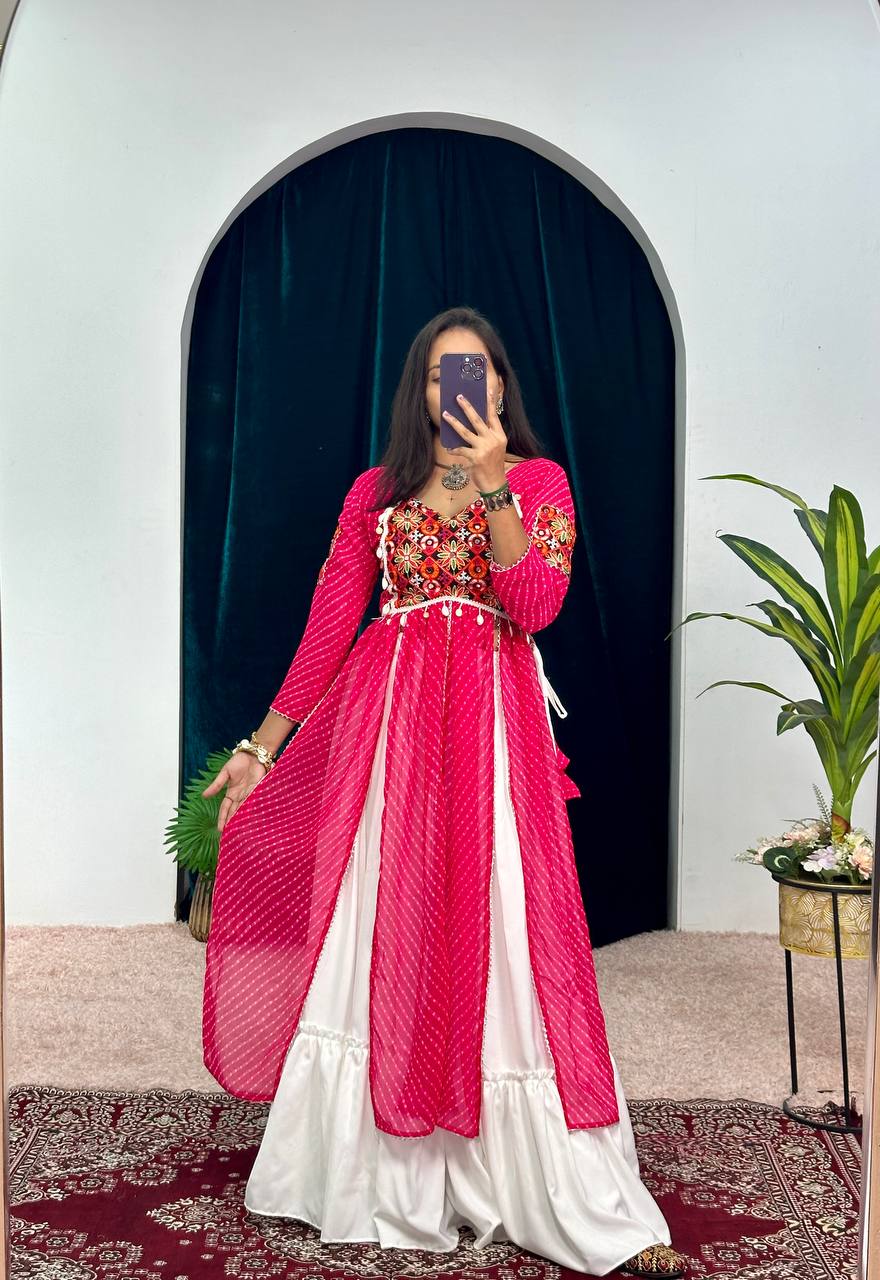 Traditional Embroidered Lehenga Choli Set with Canvas Patta and Lace Border
