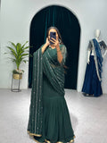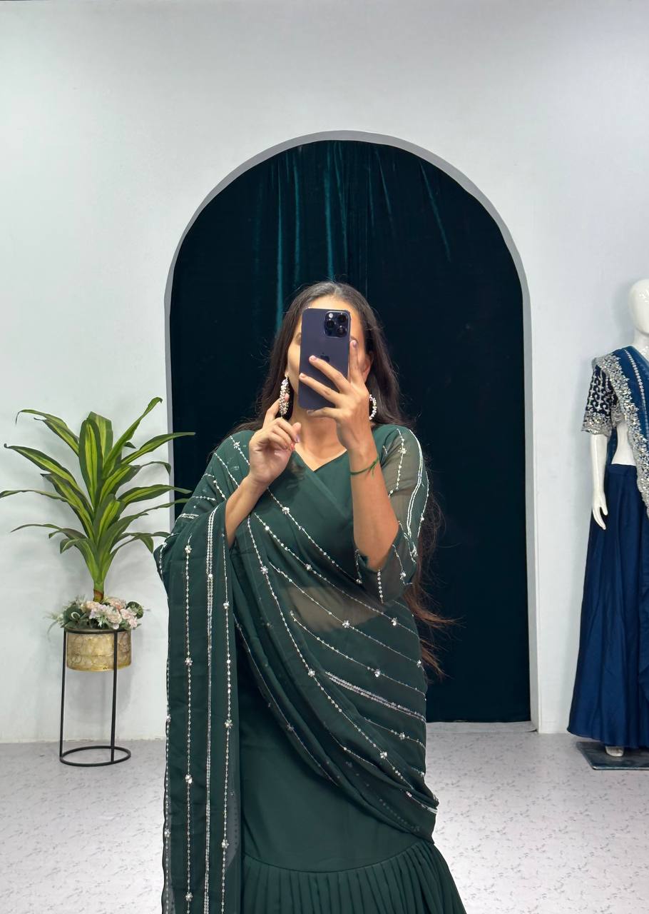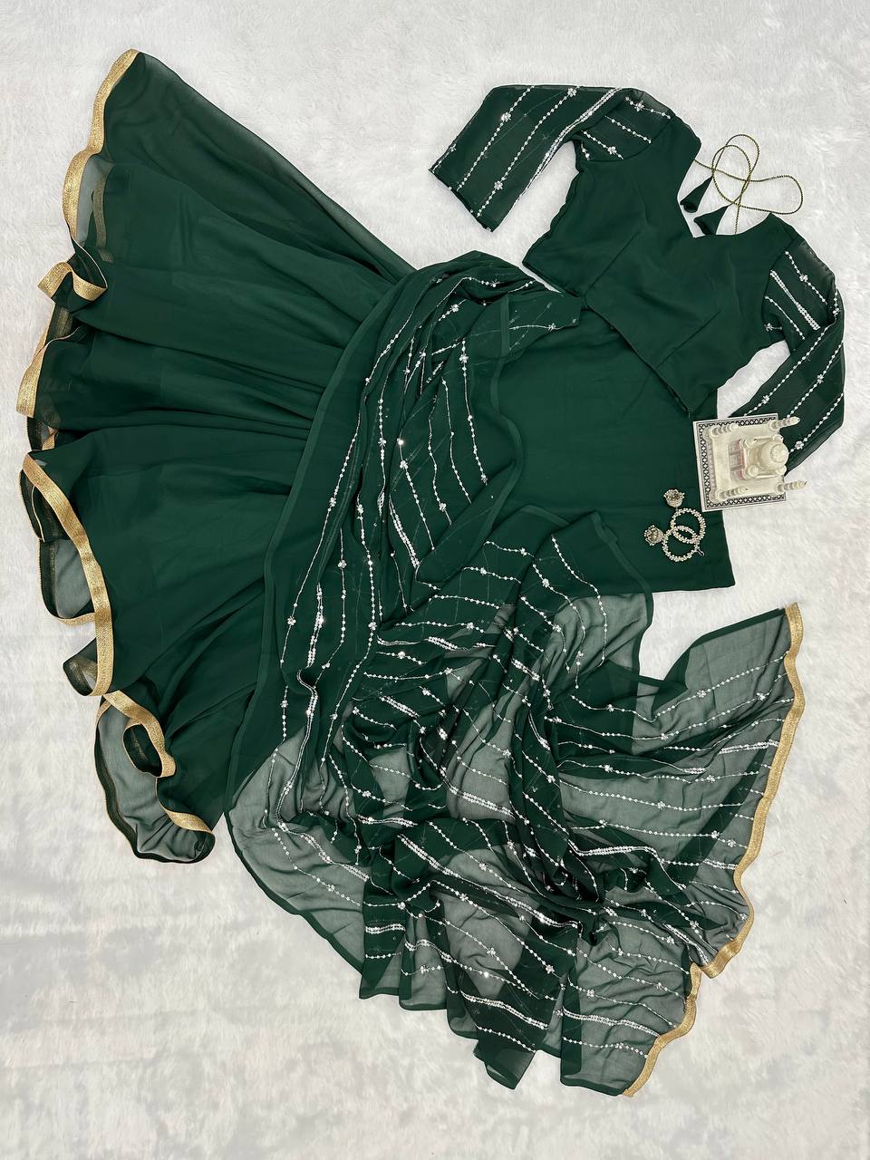 Traditional Lehenga Saree Set with Full Embroidery & Faux Georgette Blouse (Green)